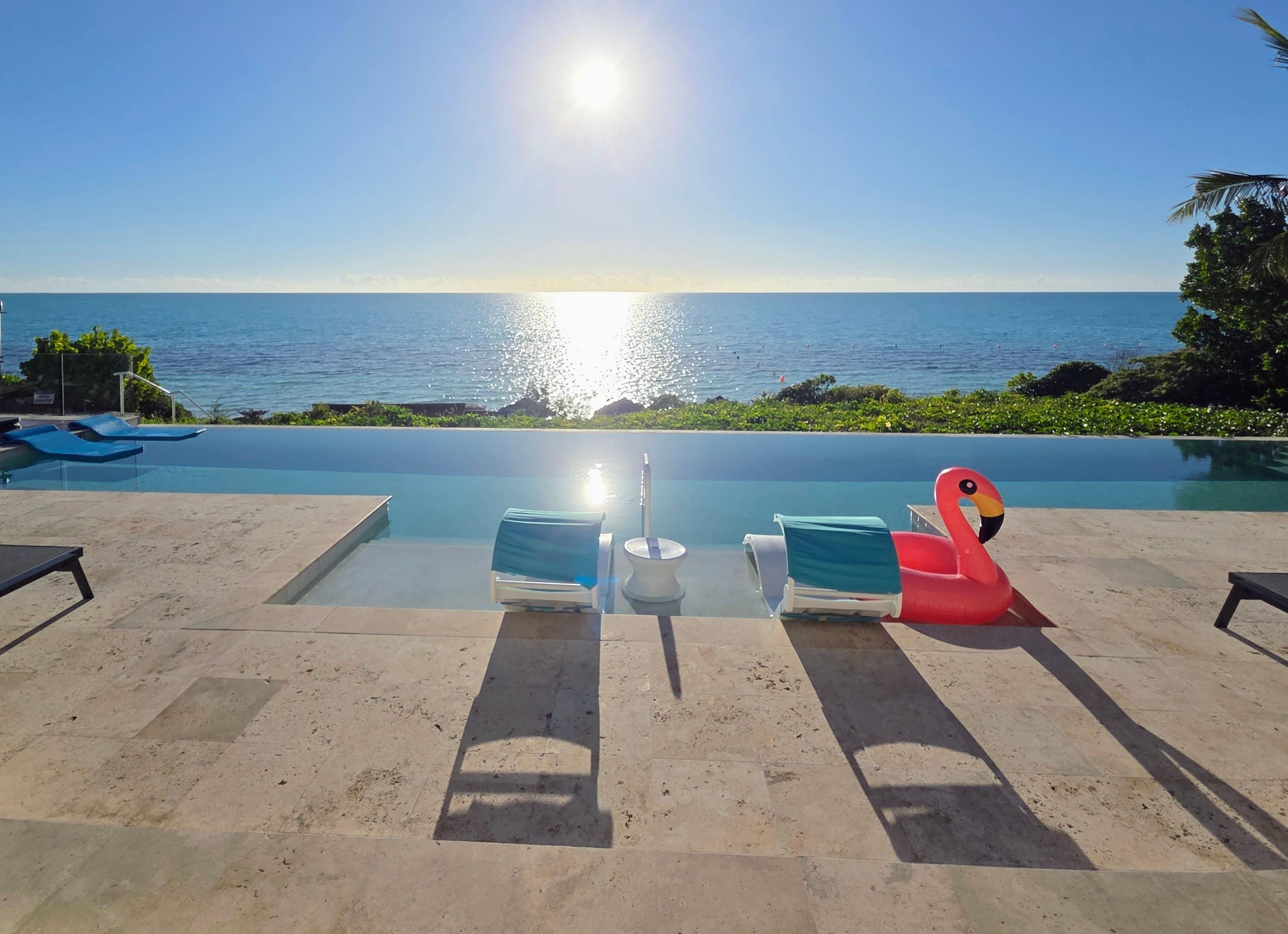 Wake up to the sound of ocean waves and take in the gorgeous sunrise from one of the bedroomâs private balconies. Spend your days lounging comfortably on the pool deck, and cool off with a relaxing swim in the infinity pool. At night, soak in the heated spa under the starry sky, cocktail in hand.