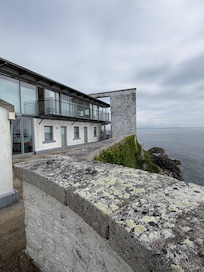 Ă travers la petite cour se trouve l'extraordinaire espace rempli de lumiĂšre qu'est la «maison longue». En 2008, les propriĂ©taires ont achevĂ© une conception radicale consistant en un cuboĂŻde rectangulaire Ă parois de verre reposant sur deux nouvelles chambres et une deuxiĂšme salle de bains. Ce merveilleux ajout permet des vues spectaculaires du niveau supĂ©rieur Ă 270 degrĂ©s. Dans un article de fond sur la visite de l'Irlande, US Airways Magazine (janvier 2012, page 38, disponible en ligne) recommande la propriĂ©tĂ© comme un endroit fabuleux oĂč sĂ©journer et dit que si vous rĂȘvez d'une vue sur l'ocĂ©an, cette propriĂ©tĂ© arrive en tĂȘte de liste 'complĂšte avec plancher- fenĂȘtres au plafond rĂ©vĂ©lant les vagues bleues hypnotiques de l'Atlantique!