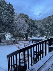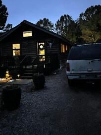 Nestled in the piñon pines this cabin gives you the beautiful seclusion from the busy world yet you are less than 10 minutes from town. It is a small intimate place for couples or a fun outdoorsy place for a family. There are chickens on the property that provide farm fresh organic eggs. In the summer there are 2 ditches that run through the property providing a nice touch with the element of water.