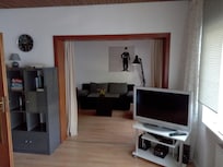 La maison a Ă©tĂ© rĂ©novĂ©e dans les annĂ©es 2012/13. Le rez-de-chaussĂ©e abrite les salles de sĂ©jour, la cuisine et une toilette. La cuisine est entiĂšrement Ă©quipĂ©e d'un four avec plaques vitrocĂ©ramiques, lave-vaisselle, rĂ©frigĂ©rateur avec congĂ©lateur et un coin salon avec tĂ©lĂ©vision. Une chambre de stockage peut Ă©galement ĂȘtre utilisĂ©. Le grand salon avec TV et systĂšme de musique peut accueillir toute la famille. GrĂące au salon mĂšne Ă la terrasse couverte. Dans le jardin est assez d'espace pour jouer, se dĂ©tendre et grillons. Au premier Ă©tage, deux chambres pour deux personnes et une salle de bains avec baignoire, douche et WC. Dans la petite chambre les lits peuvent ĂȘtre installĂ©s sĂ©parĂ©ment. Un lit Voyage et une chaise haute peuvent ĂȘtre heureux de vous aider. Draps et serviettes peuvent ĂȘtre louĂ©s pour une taxe. Notre maison est une maison non fumeur. Les animaux sont acceptĂ©s sur demande.