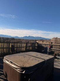 The outdoor amenities are just as spectacular, with a private dining area, lawn chairs, and a fire pit perfect for an evening of stargazing and a glass of wine. Soak in the HotSpring Jetsetter HOT TUB and let your worries melt away.