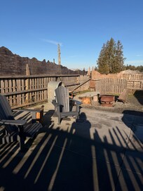 Fire pit stock with firewood. We are close to the Strait of Juan de Fuca and experience breezy and cooler days in the summer due to the marine air.