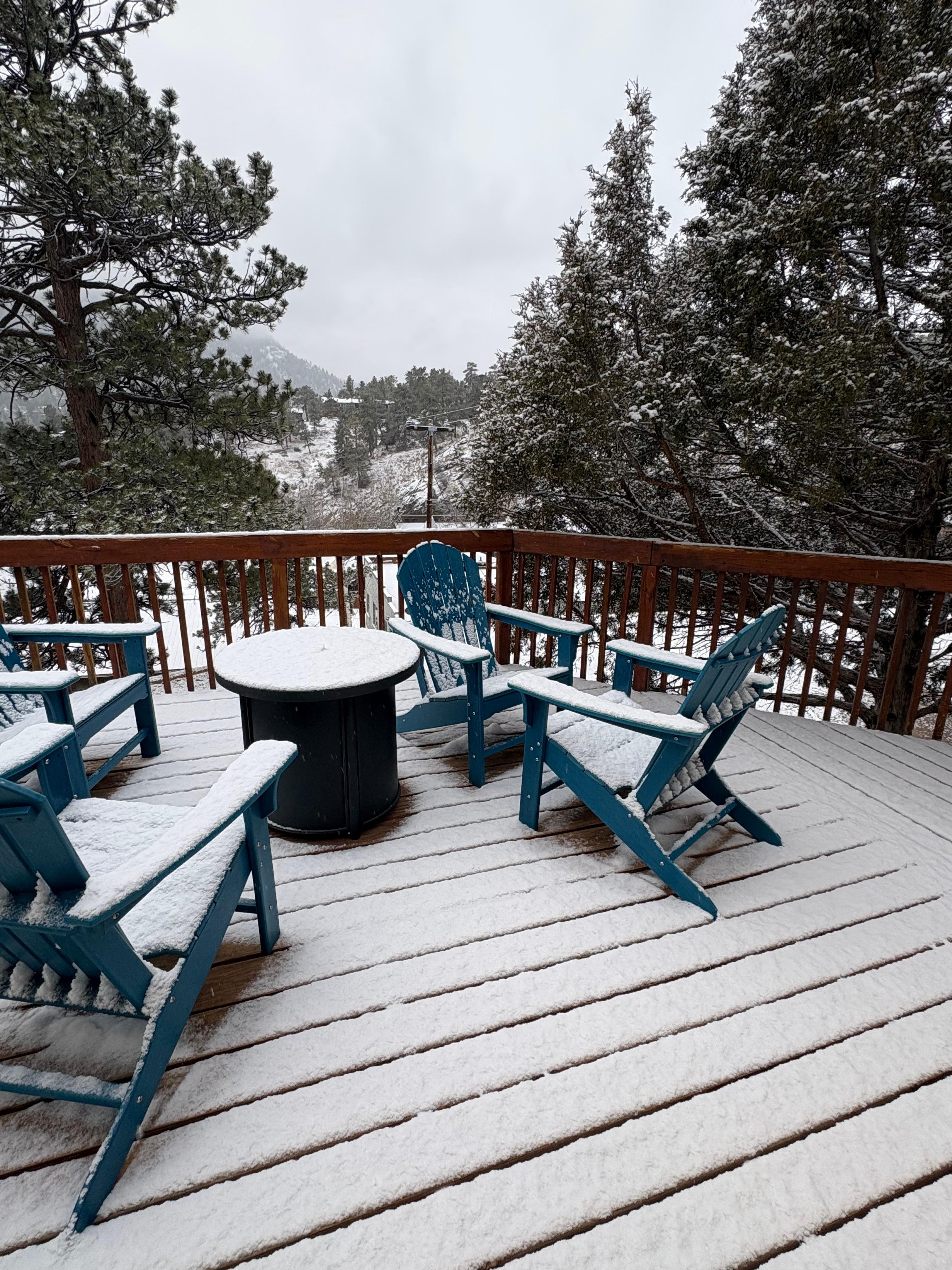 Relax and unwind at the mountain getaway located above Downtown Estes Park. Sit back and relax with ample seating and a full size outdoor table for dining. There is an outdoor grill with propane provided for your use.