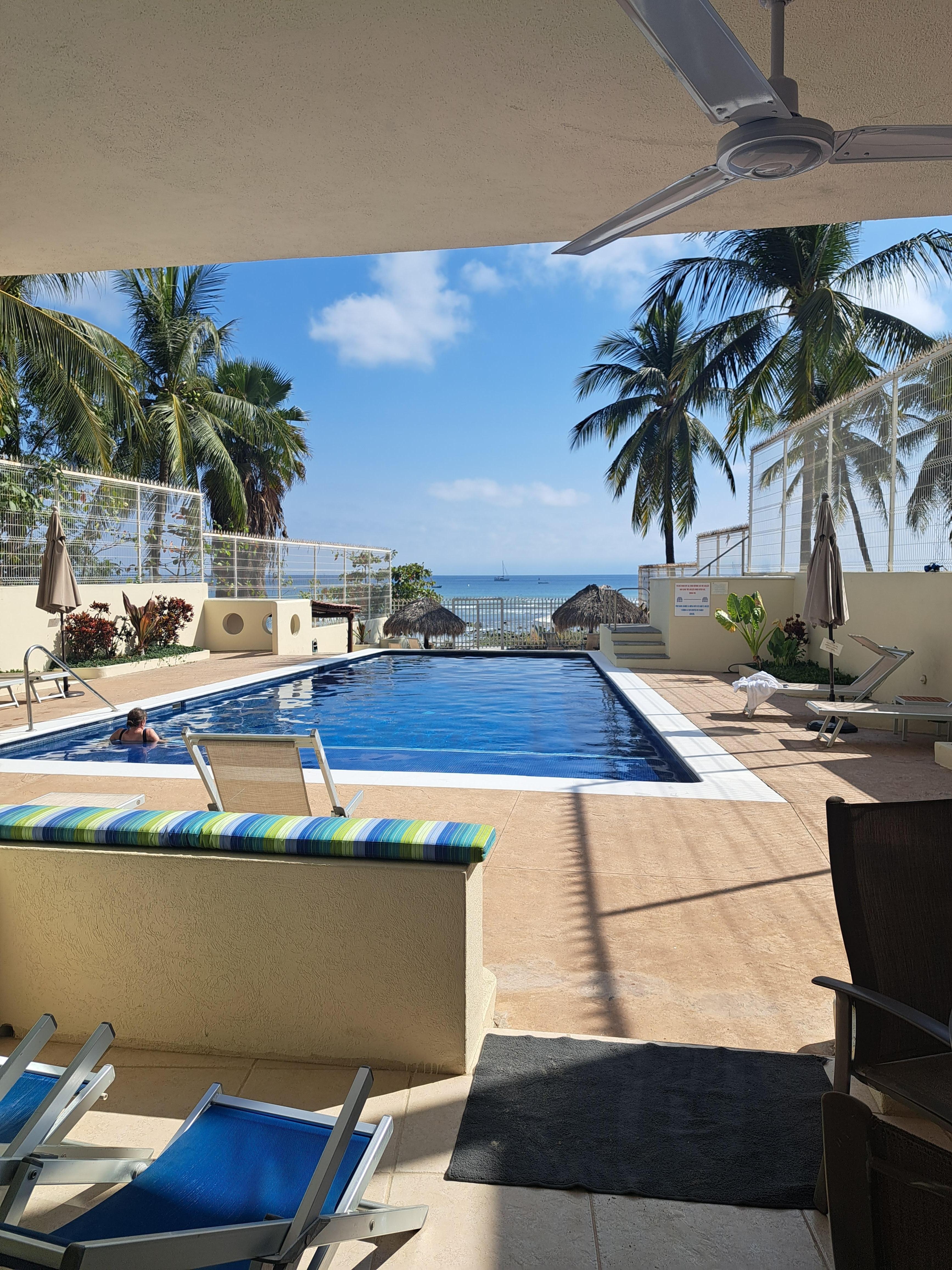 Welcome to our home away from home, where you'll be just steps from the sand and great surfing! We are truly a beach front building with our own private access to the beach. Our spacious two-bedroom, two bathroom unit is ready to provide you with a home base at the beach. We have 4 beach chairs and an umbrella for your use. Our small 12-unit complex is located just a few minutes walk from local restaurants, fishing trips, whale watching tours, and surfing lessons. There is a surf school right outside our beach gate.