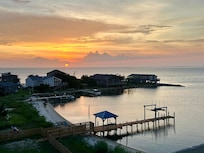 3rd floor includes a large suite with spa room, walk in shower and soaking tub, and private deck with the same wonderful water view. Plus there is another 1/2 bath and cozy den for movie night, bunk beds and access to the spiral staircase to the roof.