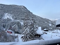 Le balcon orienté sud-ouest offre une vue magnifique sur les montagnes environnantes et vous invite en été à savourer un délicieux petit-déjeuner sur le balcon (table et 4 chaises disponibles).