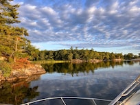 It's EVERYTHING we were looking for when we decided to buy in the 1000 Islands! It's private, and easily accessible, with a deep water dock that you can jump off of! It's close to everything while being just removed enough from the vacationing visitors! Being on a leeward side of an island protects us from heavy winds, our bay is calm, and you can see Picinic Point off in the distance.
