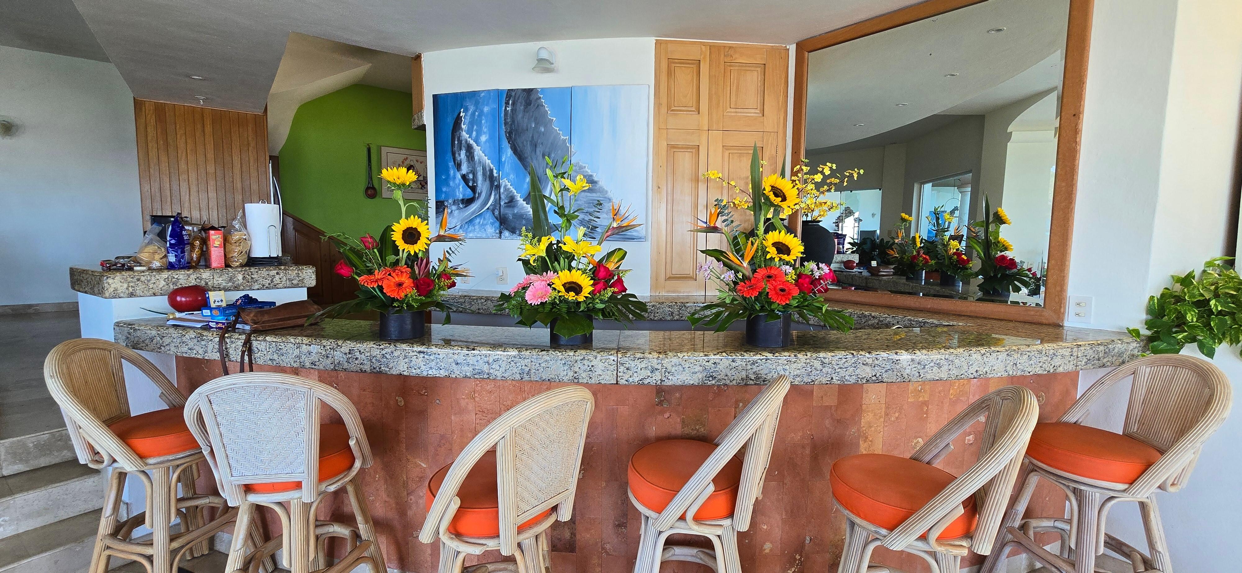 VILLA FRANCISCO est la propriĂ©tĂ© sĆur de notre autre propriĂ©tĂ© 5 Ă©toiles VILLA SANTA FE # 772040 et Alta Vista notre nouvelle unitĂ© de bain 3 chambres 3 # 1221639 et est situĂ©e Ă 1/3 mile au sud de la vieille ville Ă©tablie de Puerto Vallarta. La villa est dans un emplacement privilĂ©giĂ© et surplombe toute la baie, la ville, la jungle et les plages. Nous sommes Ă dix minutes Ă pied de la plage et Ă 15 minutes Ă pied du vieux quartier historique ou Ă 3 minutes en taxi. Nous sommes entourĂ©s de jardins privĂ©s et de jungle. La propriĂ©tĂ© est fermĂ©e, privĂ©e et sĂ©curisĂ©e. La villa est directement au-dessus de la plage de Los Muertos, la plage la plus populaire de Puerto Vallarta. Nous sommes Ă 10 minutes Ă pied de Blue Chairs ou Manta mar Resorts. Nous sommes Ă proximitĂ© des commerces, des restaurants, des marchĂ©s et du Malecon et nous proposons des couchers de soleil incroyables et des feux d'artifice nocturnes depuis le bateau pirate de Maragalante. La villa est entiĂšrement climatisĂ©e partout. Quatre suites de maĂźtre avec bains et douches privĂ©es et 3 avec baignoires en marbre. Une suite principale comprend une grande baignoire jacuzzi, une douche, des lavabos doubles et un jardin romantique et une douche extĂ©rieure. De plus, il y a une autre chambre avec un lit king size, mais doit partager la salle de bain avec une autre chambre. Les chambres comprennent Ă©galement un coffre-fort pour vos objets de valeur. L'espace piscine comprend une grande piscine Ă dĂ©bordement, un bar palapa avec un grand barbecue en acier inoxydable, un bar avec Ă©vier et des chaises longues. nous avons Ă©galement le WIFI et un systĂšme de son bluetooth. Nos tarifs comprennent un chef, un sous-chef, une femme de mĂ©nage Ă service complet (qui fait votre lessive tous les jours), un poolman / jardinier et un service de conciergerie gratuit pour rĂ©pondre Ă tous vos besoins personnels. Notre concierge vous contactera deux semaines avant votre arrivĂ©e et vous enverra un questionnaire avant l'arrivĂ©e vous demandant les heures d'arrivĂ©e, le nombre et les noms de tous les invitĂ©s ainsi qu'une liste de courses pour savoir comment vous souhaitez que la villa soit approvisionnĂ©e Ă votre arrivĂ©e i. e .; alcool, collations, nourriture, fruits et tout autre article que vous pourriez demander. Le service du chef comprend deux repas par jour i. e .; le petit dĂ©jeuner et le dĂźner ou le dĂ©jeuner et le dĂźner et prĂ©sentera des justificatifs des coĂ»ts rĂ©els pour tous les articles achetĂ©s. Il y a un supplĂ©ment de 30 $. 00 frais quotidiens de shopping / service pendant les jours les boutiques du chef. Nous facturons Ă©galement 15 $ par personne et par repas pour les INVITĂS SUPPLĂMENTAIRES INVITĂS au-dessus de 10. Nous fournissons des peignoirs pour tous nos invitĂ©s et plaçons des fleurs locales fraĂźches dans toute la villa. Ă votre arrivĂ©e, vous serez accueilli avec des margaritas fraĂźches, du guacamole, de la salsa, des frites et un plateau de lĂ©gumes frais. Veuillez lire toutes les critiques des commentaires prĂ©cĂ©dents des clients et revoir les 29 photos.