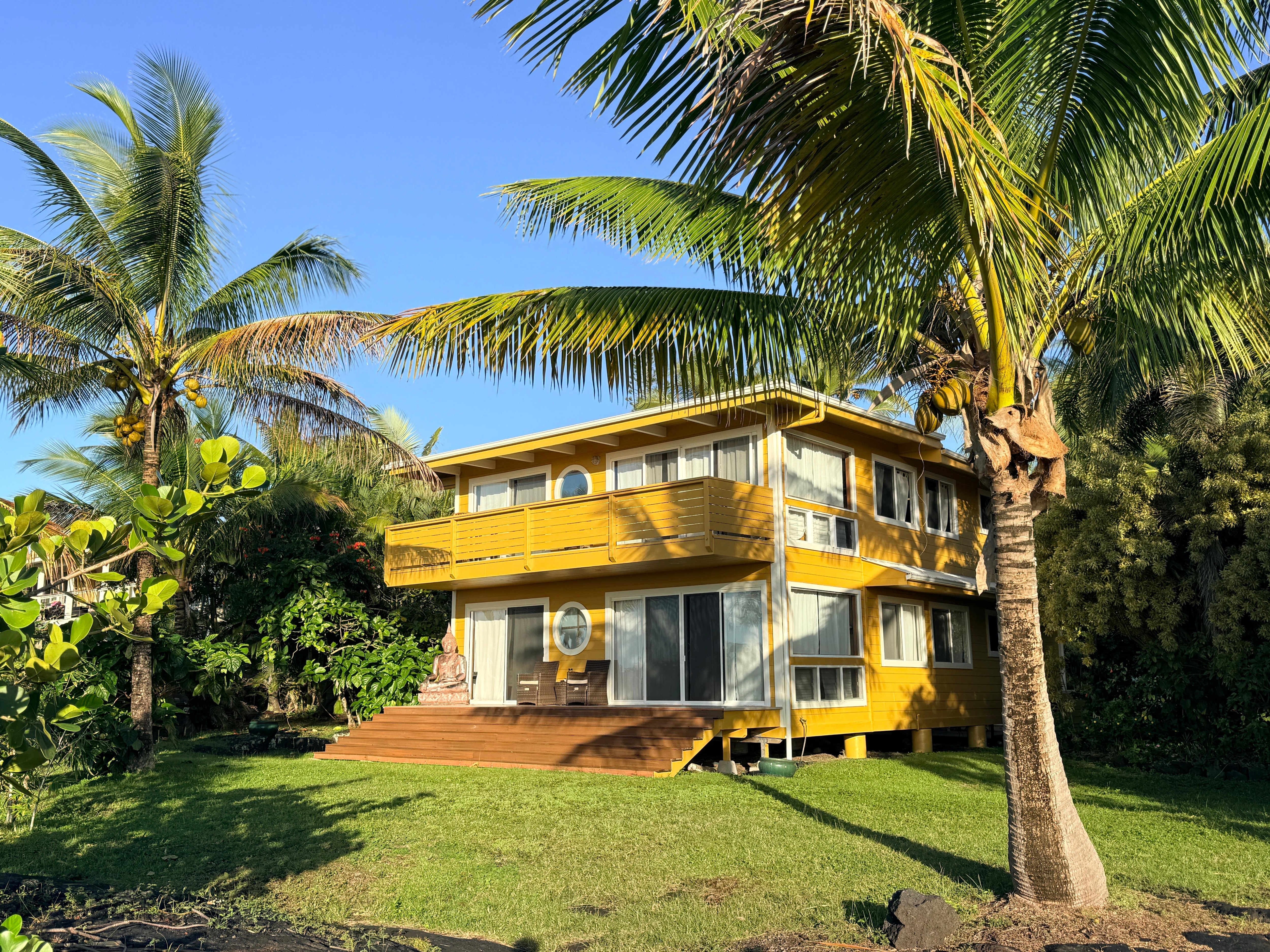 Le temple de Bali est situé à cÎté de la coulée de lave de 1993, qui a créé 160 degrés de vues glorieuses et étendues sur l'océan Pacifique et les eaux vives pour votre plaisir. Il y a une plage de sable noir privée à quelques centaines de mÚtres pour profiter des levers et couchers de soleil toute l'année et regarder les baleines à bosse se briser pendant les mois d'hiver.
