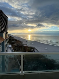 Your kitchen comes fully equipped with luxurious appliances, marble countertops, and all the utensils you may need during your stay. This allows guests to whip up breakfast and prepare for a day in the sun or craft the perfect cocktail to be enjoyed out on the private balcony as the sunsets. No matter how you choose to utilize your kitchen space, you will be prepared. Speaking of a private balcony, this is sure to be your favorite spot to relax in your home away from home. It overlooks the beautiful beaches ensuring you never miss a moment savoring the gorgeous views.