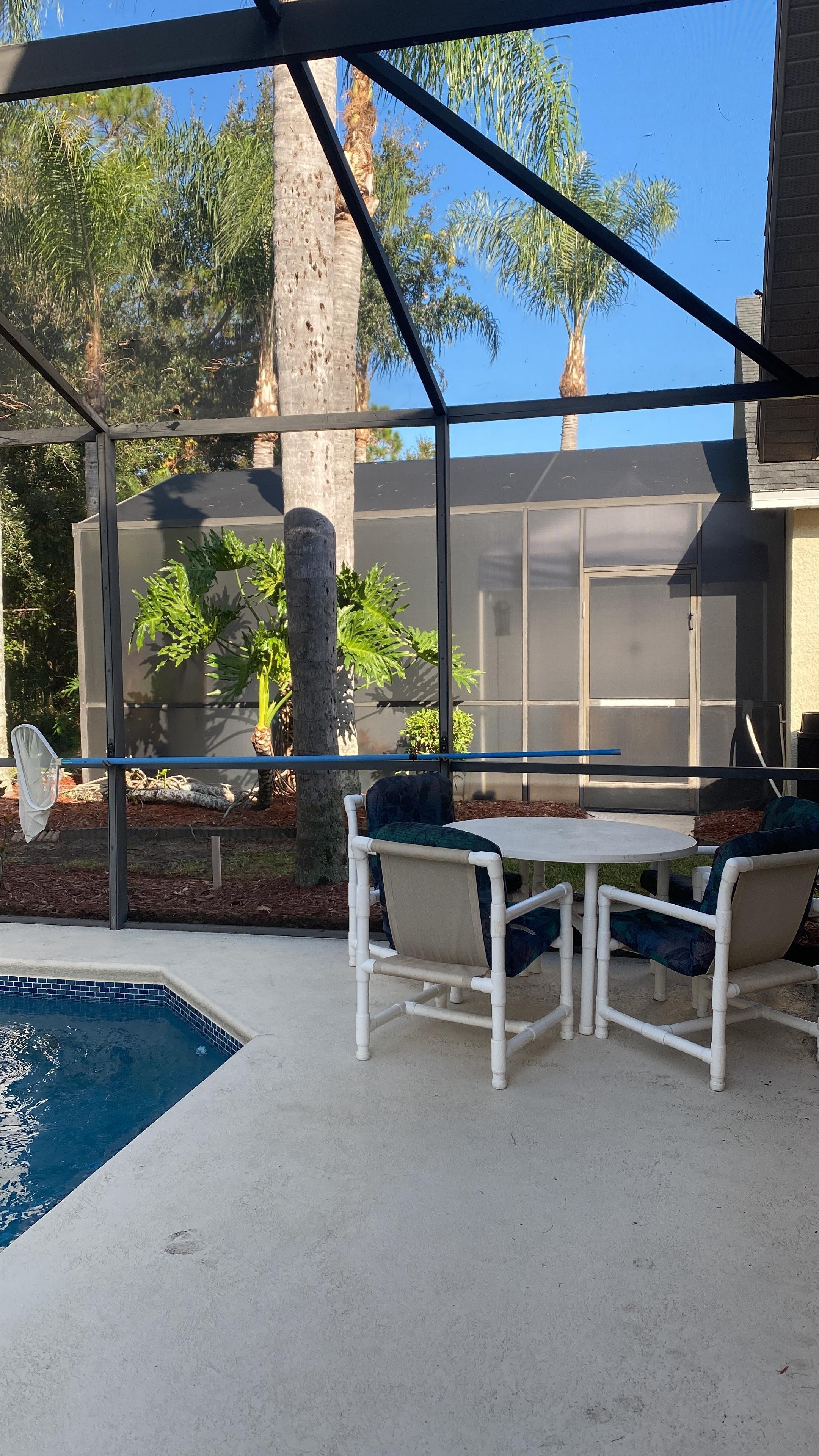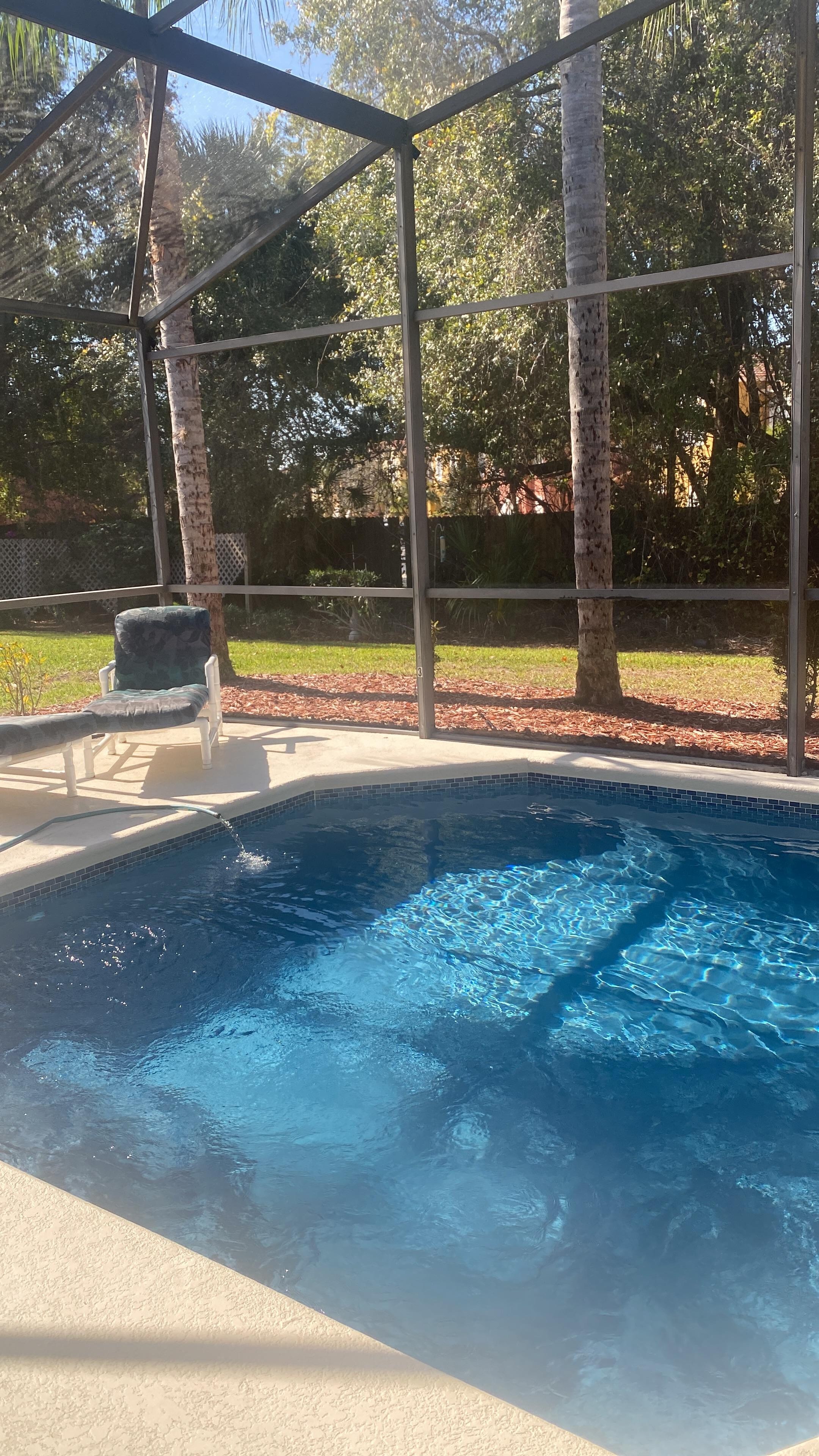 The family room has a 65" screen HD TV with premium cable and Bose sound system that opens up to the private screened in heated pool. A completely stocked kitchen is available to satisfy your cooking needs for those inclined to cook.