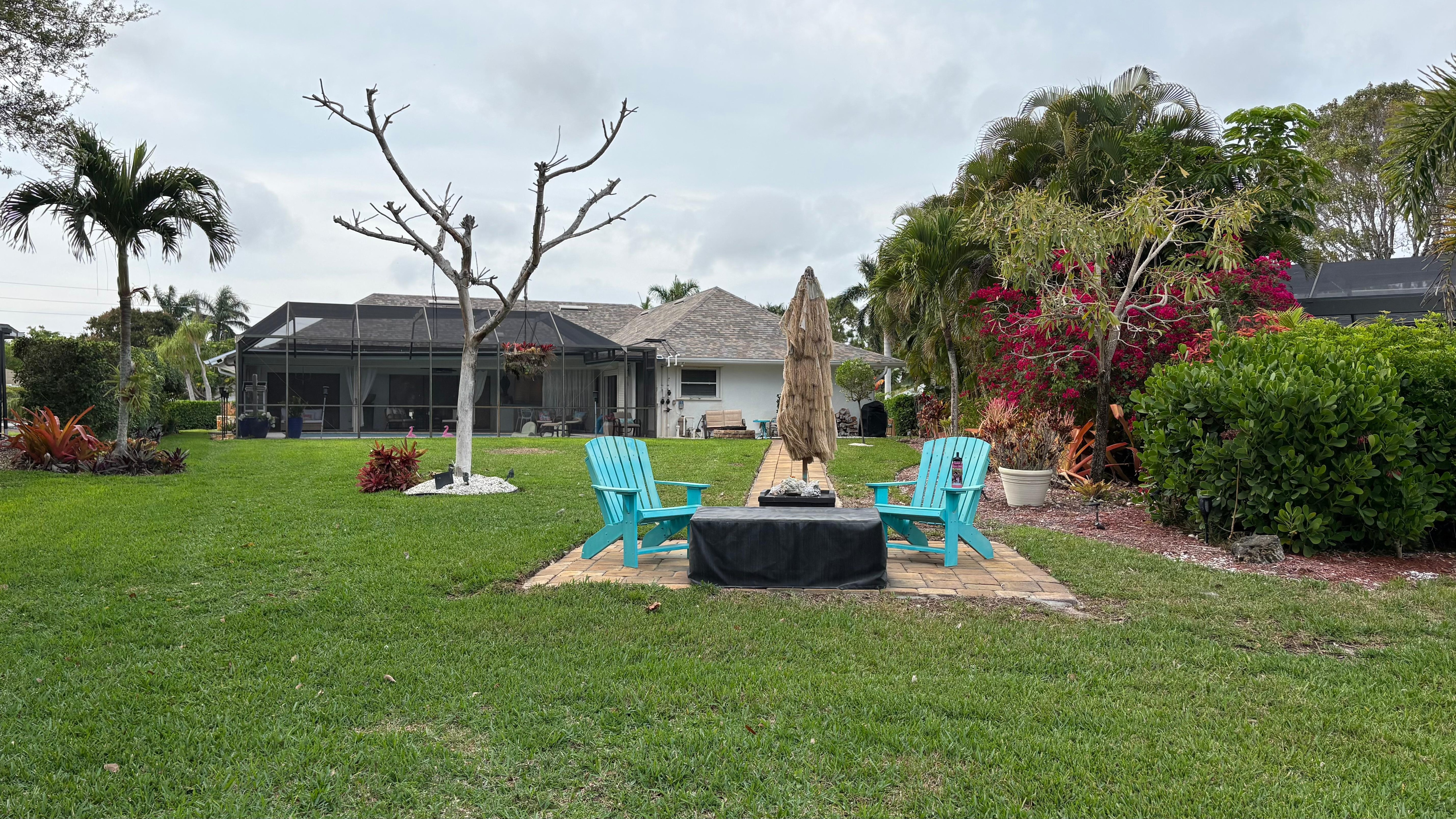 It has a private entrance through a beautiful garden where you can sit and enjoy your favorite beverage. The kitchen is stocked with condiments, refrigerator, stove, tabletop oven, microwave and a Keurig coffee maker. The laundry room has its own washer and dryer. The living room/kitchen area has a sofa bed and flat screen tv. The bathroom is stocked with towels and a hairdryer and provides direct access to the pool. The bedroom features a king-size bed with a luxury mattress, large screen tv and a walk-in closet. The bedroom sliding doors lead directly out to the pool. There is another room /tv room with a sofa bed for 3 person.There is also a seating area for two at the lake near the house with a fire pit. You will have access to the pool during the hours from 8 am to 7pm. There is a gas grill available for your use. This can be your cozy home away from home in beautiful Naples!