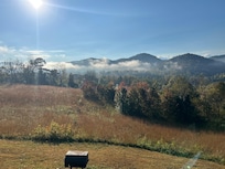 Enjoy the fresh mountain air and the tranquility of this home's great outdoors in the Smoky Mountains! The relaxing outdoor space at this home is a true getaway. Enjoy the hot tub with breathtaking mountain views, or fire up the charcoal grill for a delightful barbecue. The deck provides ample space for relaxation, featuring rocking chairs to soak in the fresh air. Gather around the cozy fire pit in the evenings and make the most of the big yard, which is perfect for games and gatherings. Outside tables and chairs invite you to dine in nature, adding a touch of rustic charm. This space combines convenience and tranquility.