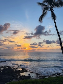DSL sans fil gratuit. Séjournez dans un condo d'une chambre de style insulaire rénové avec un lit king-size, condominium direct en bord de mer sur la célÚbre Alii Drive. Cuisine et salle de bain rénovées avec comptoirs en granit. Le condo peut accueillir 2-4 personnes, avec un canapé-lit dans le salon. L'unité est décorée dans un décor tropical. Observez les baleines, les dauphins et les tortues de mer depuis votre véranda (balcon) qui se trouve à seulement 20 pieds de l'océan, ou détendez-vous et profitez des couchers de soleil tout en dßnant sur votre véranda privée. Une plage de sable se trouve juste à cÎté. Un favori pour les surfeurs locaux! Ceci est une unité non-fumeur et complexe.