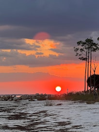 Enjoy the privacy of the secluded beach just steps from the back deck. Dine or simply unwind on the screened-in porch in the shade of the trees while listening to the sounds of nature and the waves in front of you.
