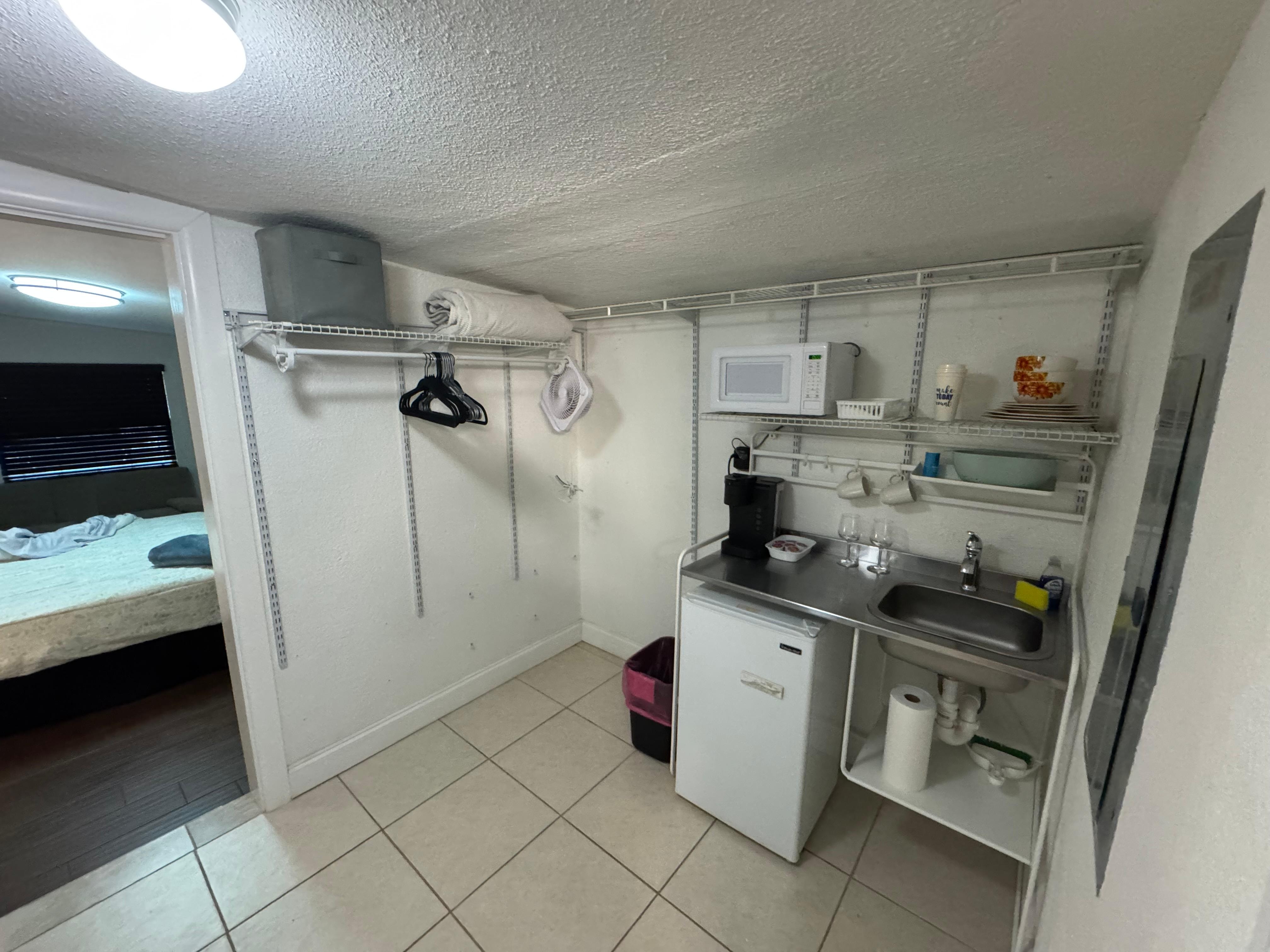 Cozy studio, big bathroom with Bluetooth lamp, double vanity, little kitchenette, dining table for 4, microwave, refrigerator, coffe maker, Rocku Tv (Netflix), Wi-Fi, Minisplit A/C.
