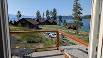 Featuring a wrap around porch, a second-story balcony for excellent sunset views, 200 ft shoreline of private direct access to Flathead Lake, a 75 ft F-shaped dock, and more than enough parking for your family and friends.