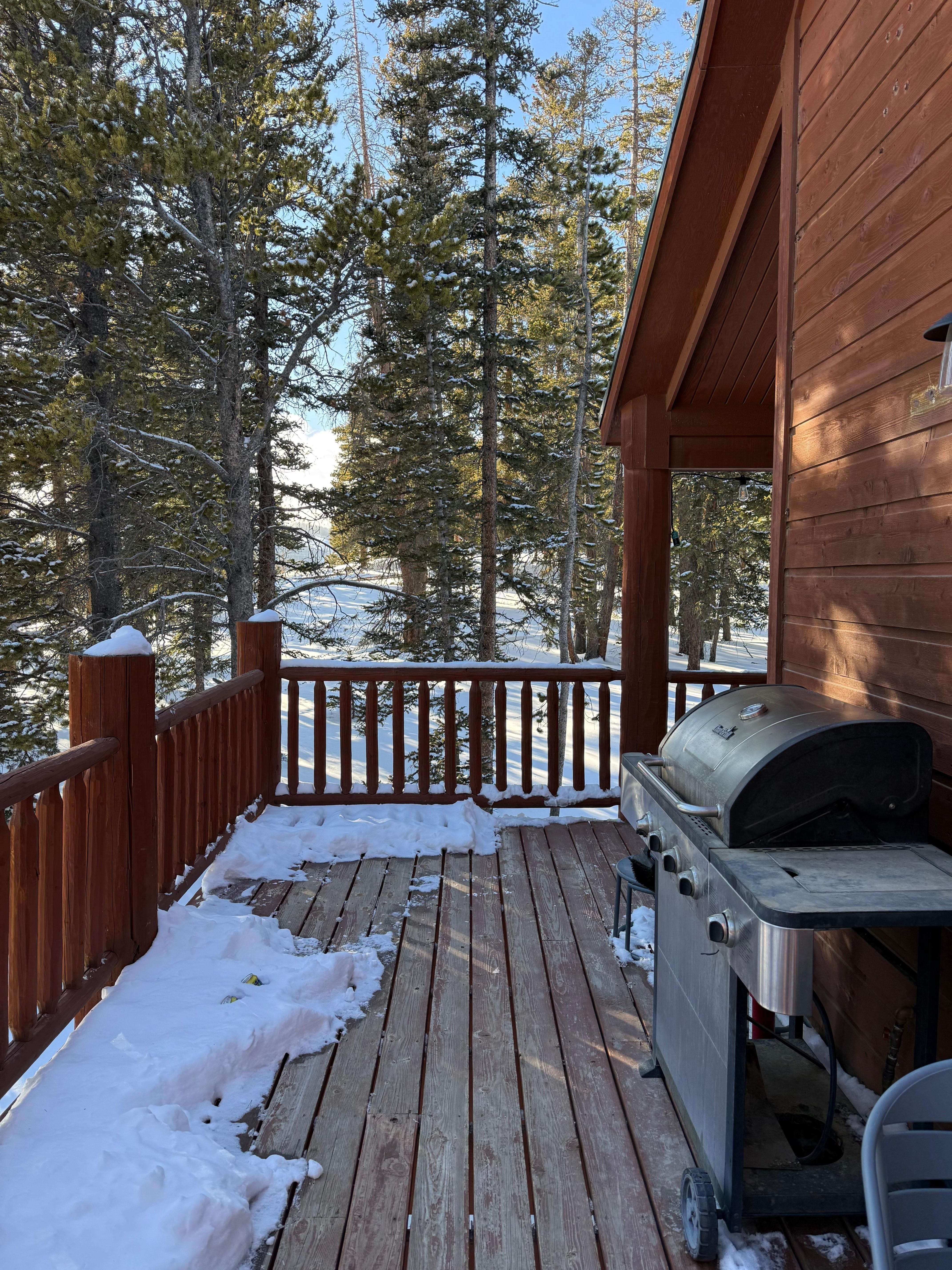 The large, elevated, wrap-around deck of the home offers a large corner hot tub where you can soak in the beautiful views of the majestic mountain range. Use the full size BBQ grill to cook up some family favorites, that you can enjoy while lounging on the nearby bistro set.