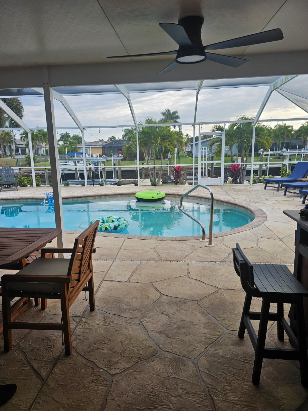 Perfect destination to relax and play! Bring your family or bring your friends. Thereâs something for everyone. We aim to provide a clean, comfortable, safe home for guests to stay and play. Home has 3 bedrooms, master bedroom has a king bed, second bedroom has a queen bed, third bedroom has two twin beds. Open concept kitchen, family room, game room. The home has a pool table, 2 arcade style pac man machines, darts, and shuffle board table. All bedrooms have smart tvâs as does the living room, as well as the patio. Bikes are also included as well as 2 stand up paddle boards. Fishing poles are also provided for fishing off the dock in the backyard. Many people enjoy renting a boat and the dock is available for your use upon request. Did I forget to mention the electric heated saltwater pool with outdoor dining table and 4 lounge chairs? Perfect for enjoying the Florida sun! Outdoor dining table is under the roof and entire patio is screened in. Cape Coral is best known for its 400 mile canal system which attracts many boaters to the area. There are several fabulous local restaurants sure to please! Many are located on 47th Terrace, our local âdowntownâ area, which is just 5-10 minutes from the house. The downtown area has a farmers market every Saturday morning, and various art fests and bike night every other month during the winter months. There are a number of bars on 47th terrace as well. The yacht club beach is located 5 minutes from the house on the Caloosahatchee river. It is currently undergoing many changes since hurricane Ian, but currently remains open, the Boathouse at the yacht club is closed. Some local attractions include the beaches of Ft Myers and Sanibel/Captiva all about a 30 minute drive, depending on traffic and time of year. The Edison Winter Estates in Ft Myers, Six Mile Cypress Slough in Ft Myers, Four Mile Eco park in Cape Coral, Wicked Dolphin Distillery tour in Cape Coral, Fleamasters Flea Market in Ft Myers, the River District in Downtown Ft Myers. Please see our other vacation rental also located in the yacht club with over 180 reviews. Listing id is 4445660.