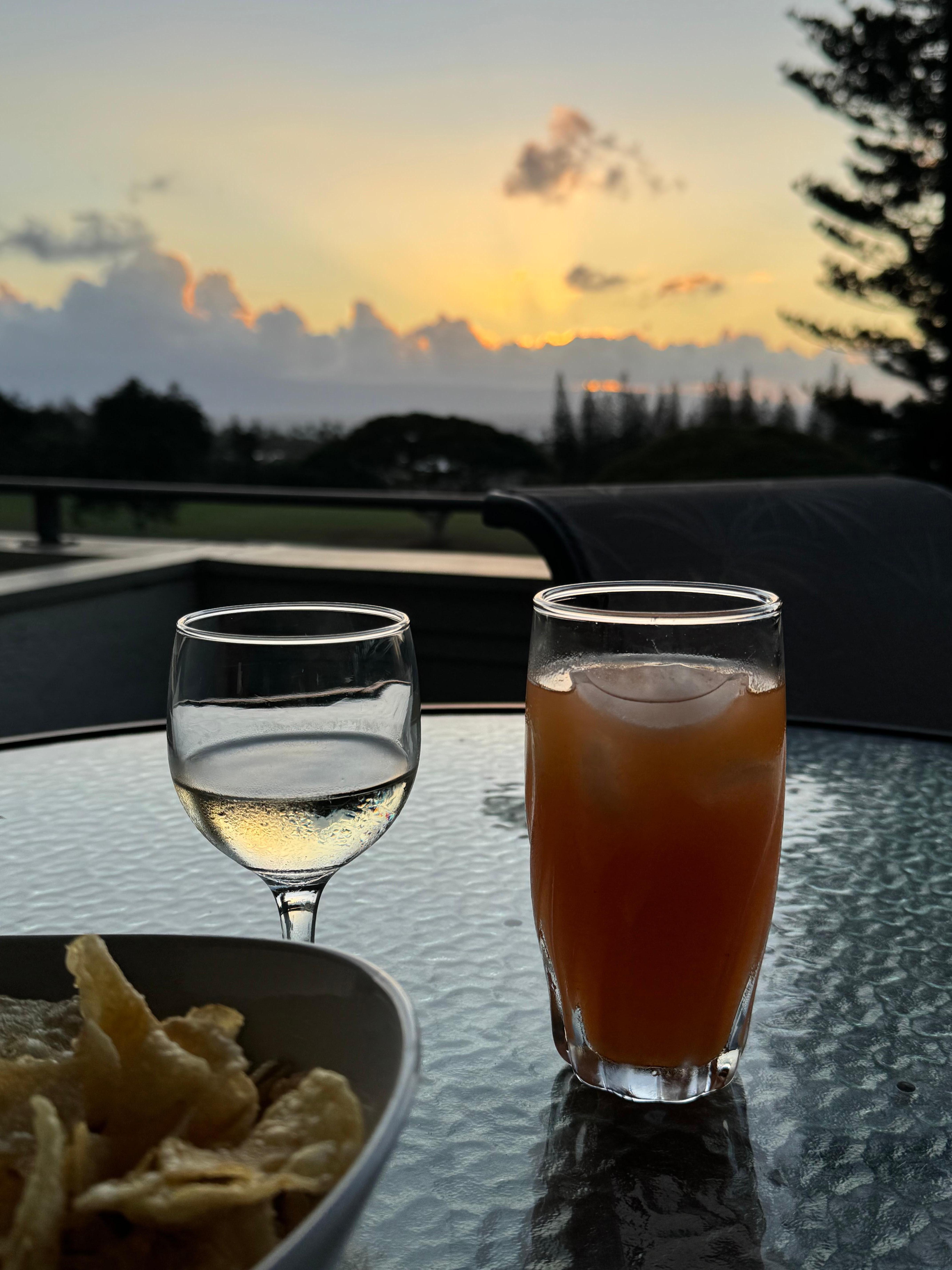 -Spacious furnished lanai with spectacular sunset and golf course views, with a peekaboo look at the ocean below