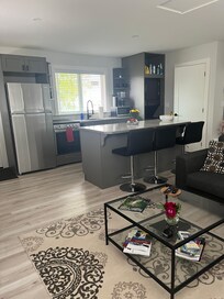 Separate Studio apartment is sunny and large. This stylish place is perfect for a weekend get away on the Sunshine Coast. Your space is separate from the main house and very quiet. Located close to Bonniebrook Beach and all that Gibsons has to offer. This detached studio has a large living area with a Queen bed, Full kitchen, Kitchen island and 3 bar stools, sofa and TV, washer/dryer, bathroom with a soaker tub and shower. Stay for the weekend or stay for a month...you will not be disappointed!