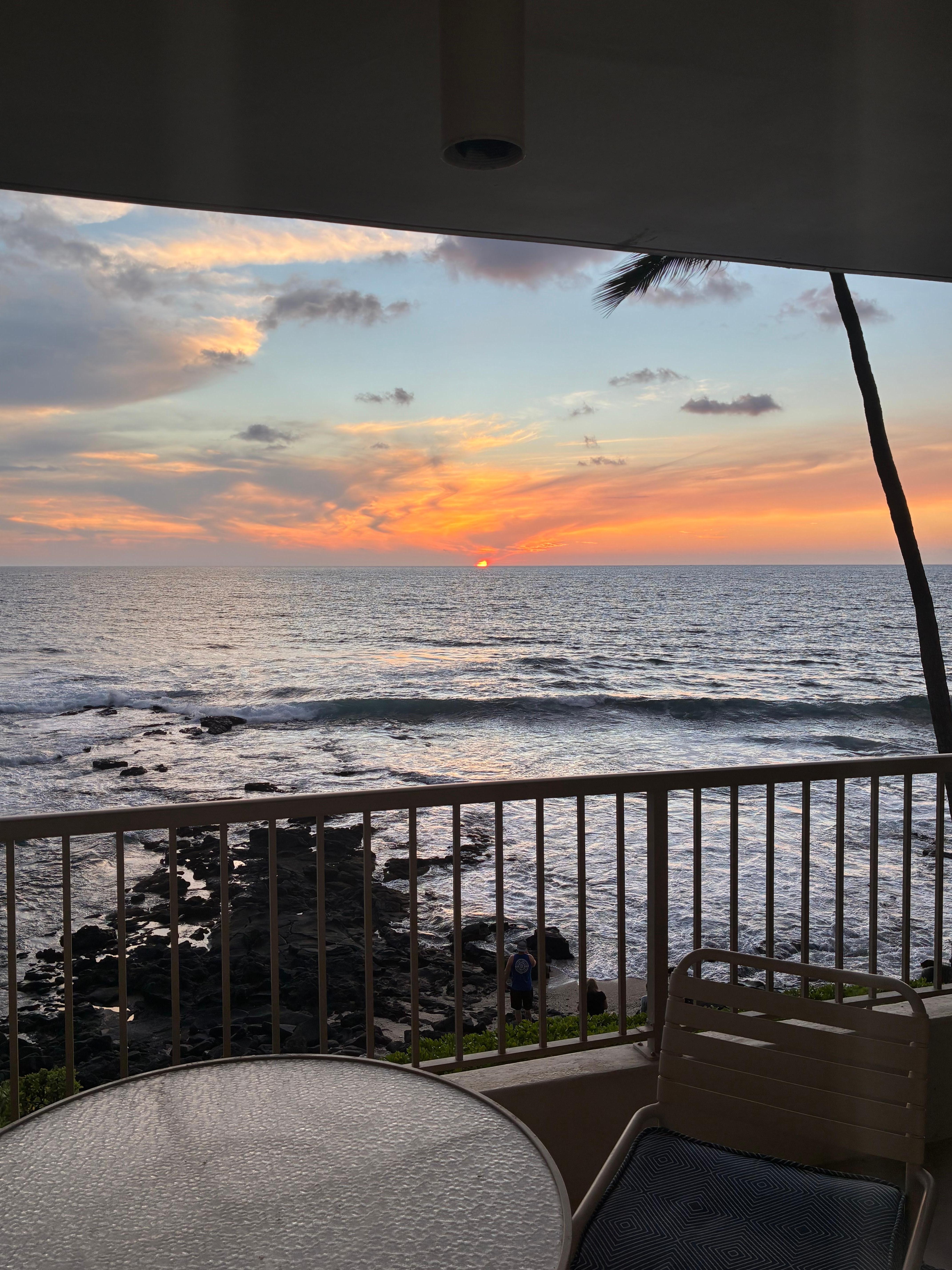 Profitez de belles vacances avec votre propre endroit spĂ©cial sur la cĂŽte de Kona. Il n'y a qu'un cocotier entre vous et le front de mer, vous obtenez l'air et le son de l'ocĂ©an 24/7. Si vous aimez regarder le surf et l'entendre Ă son meilleur, c'est l'endroit. Ă peu prĂšs tout ce qui se passe au bord de l'eau de Kona peut ĂȘtre vu depuis la vĂ©randa. Il y a l'observation des baleines et des dauphins, la parapente, la randonnĂ©e sous-marine, le kayak et le surf, tout cela Ă un moment ou Ă un autre. De plus, de nombreux navires de croisiĂšre peuvent ĂȘtre vus au mouillage. Un paysage marin actif.