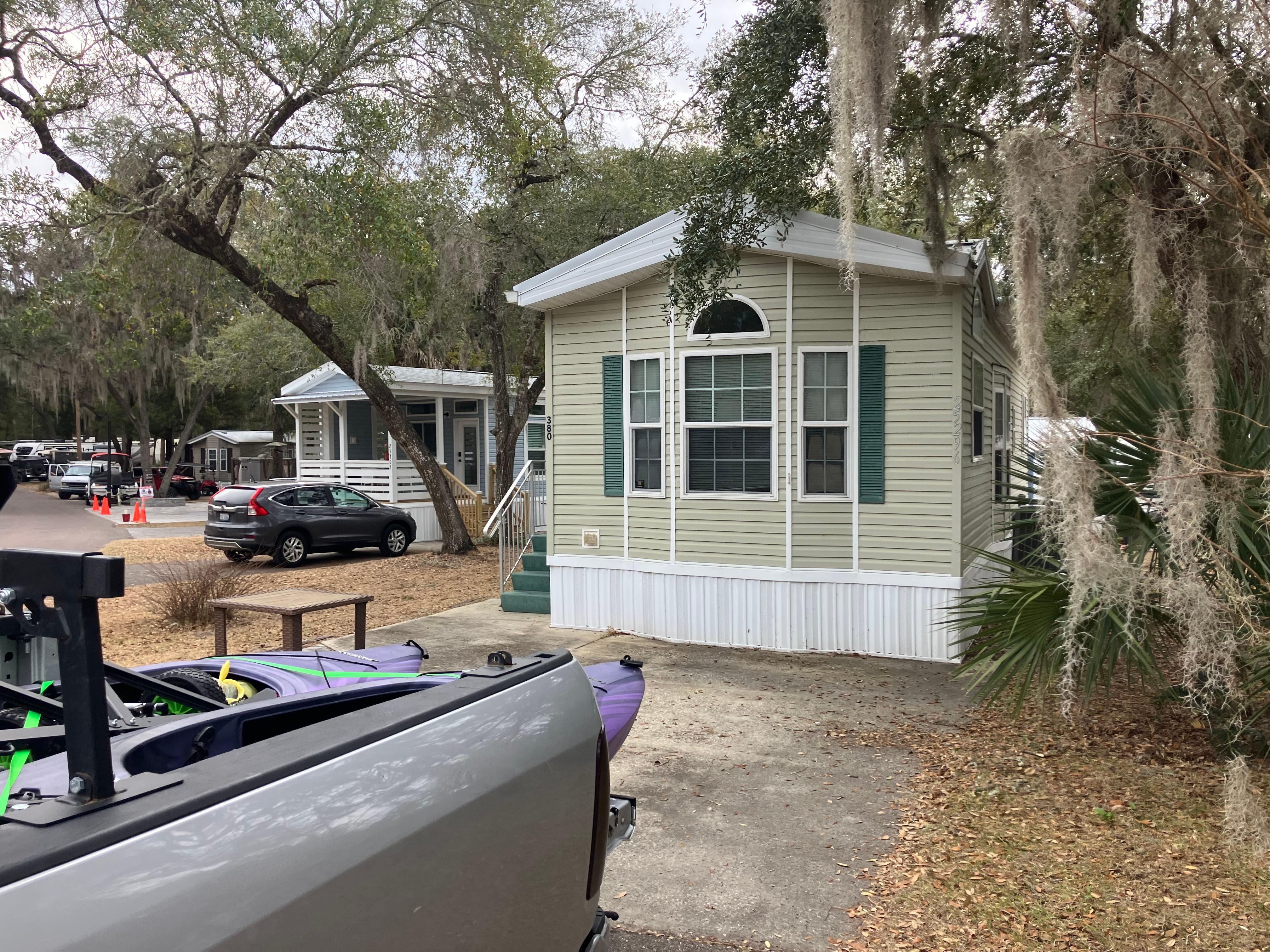 Nestled in the heart of Ocala National Forest is this adorable Salt Springs resort! Come relax at our private beach, complete with picnic tables, swings and a campfire/outdoor grill or soak in the jacuzzi. If youâre feeling more adventurous, enjoy a day of boating (accessible by private boat ramp), swimming at one of the two pools (one family and one adult only), playing Pickleball/shuffleboard or enjoying the Clubhouse amenities. Salt Springs State Park is just across the way! There are several trail heads nearby. Our place is a short walk to the lake, front gate and public showers/restrooms. There are food trucks on Friday nights. A true gem !! PLEASE NOTE: The resort HOA charges a $35 fee that is paid through DocuSign after providing your email address. This is a flat fee regardless of days
