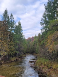 The privacy for sure. We enjoy the hot tub out back especially after a day of snowmobiling or boating. We have a big firepit outside, plus our big driveway is great for trucks and trailers to bring the toys up. I also own a lot on the water that is two blocks and can walk down to. I put a seasonal dock up that guests can use and launch the kayaks from. Next year (2024) I will have a firepit down by the water. Currently working on putting up an igloo dome to enjoy (hopefully it will by up by end of 2023).