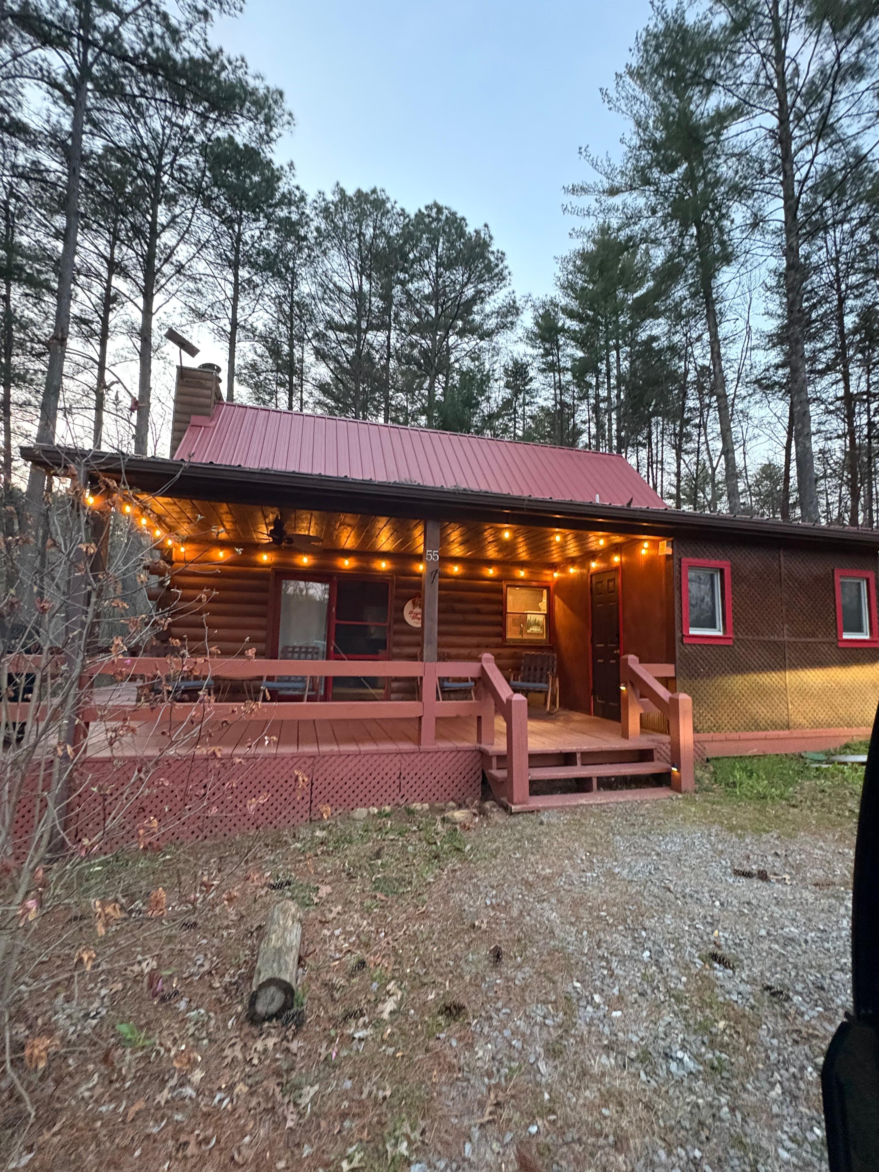 The cabin is decorated for the winter season late-November through early January.