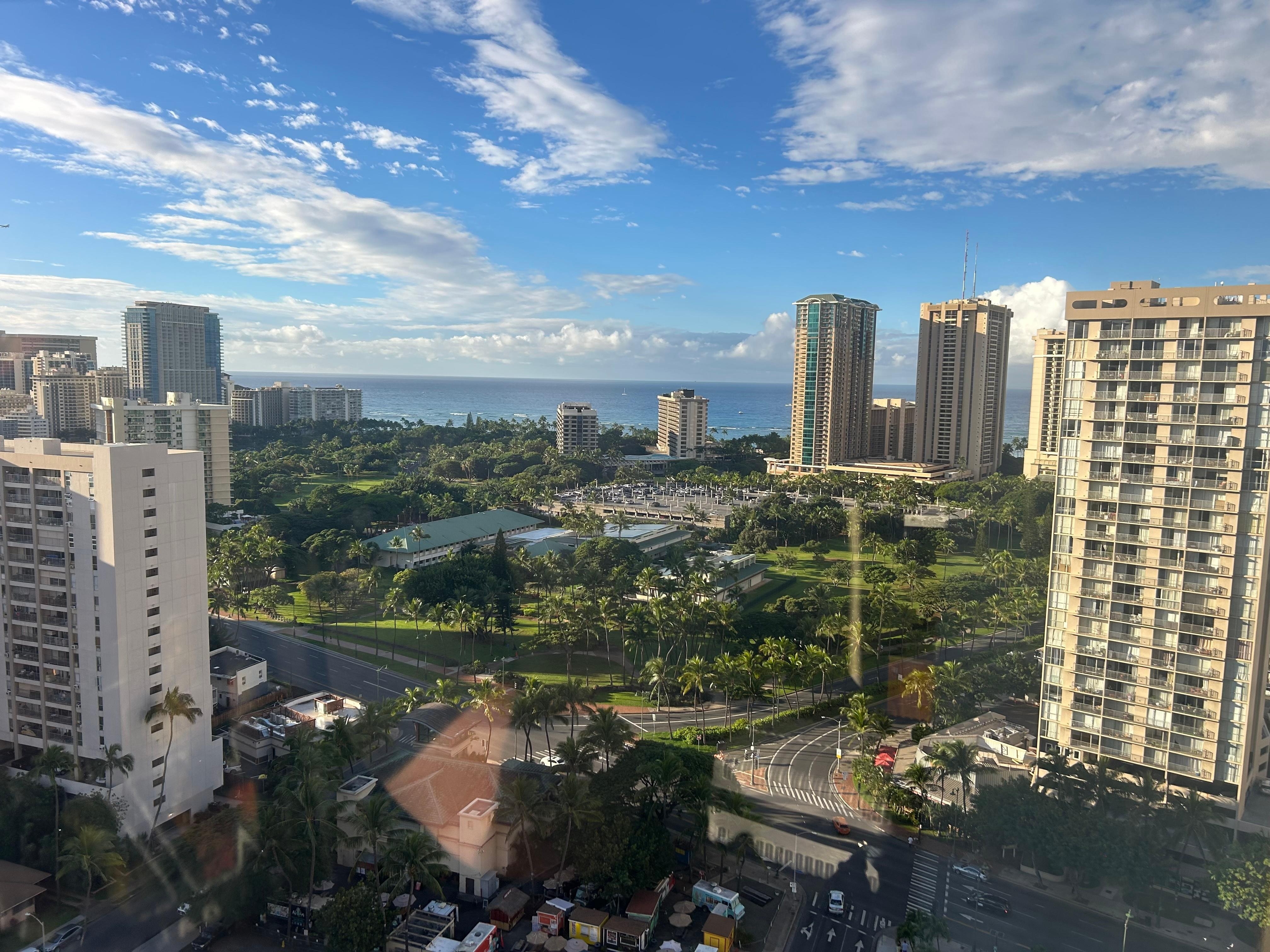 About this space Your Ideal Vacation Stay Here! The view is awesome from this newly remodeled, spacious studio condo on the 27th Floor of the Hawaiian Monarch Hotel, just a few blocks from Waikiki Beach! This clean, modern, luxurious space is in a great location to enjoy your vacation in fabulous Waikiki Beach. In this large, corner studio there is a full kitchen and a breath-taking view of the city and the ocean. The furniture is new, with a new queen bed, a comfortable sofa bed, a new 48" flat screen RokuTV. The apartment is medium size, maybe a little cozy for 3 adults, perfect for a couple and child.