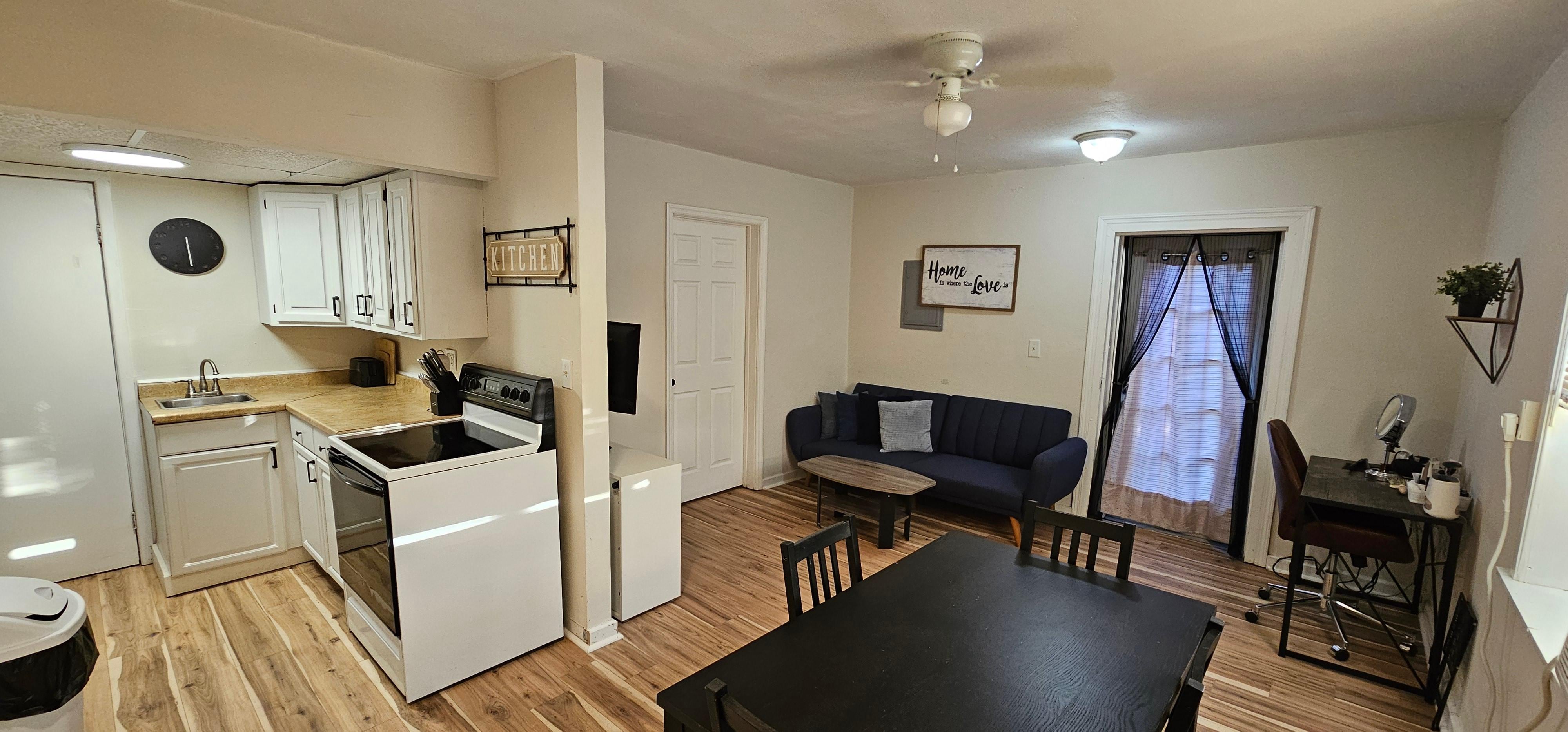 You will have access to the entire 1-bedroom, 1-bath downstairs apartment, a private off street parking space for one vehicle, and a shared patio area.