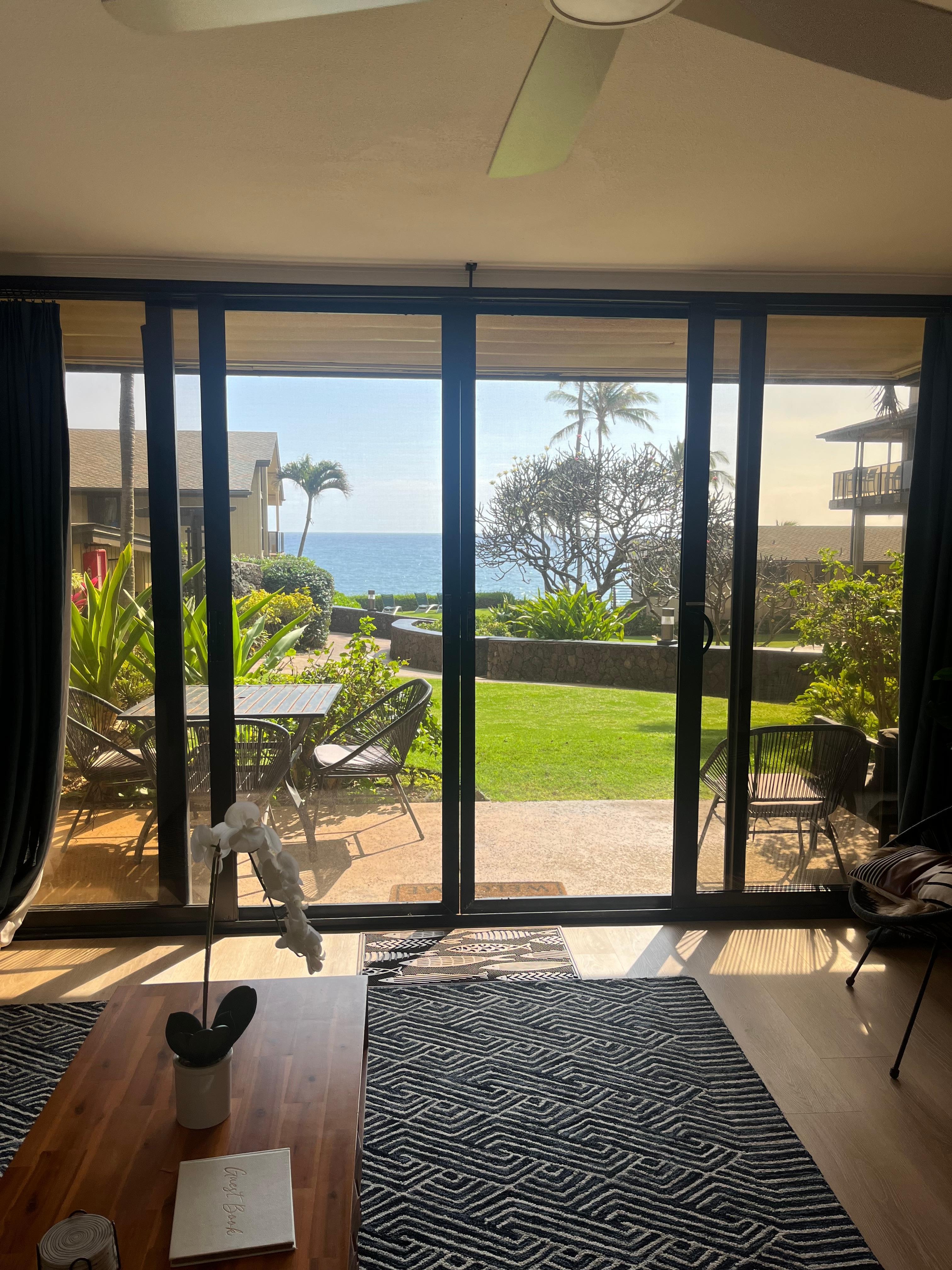 Enjoy ocean views from the living room, dining room, and main bedroom, where the Pacific Ocean creates a stunning backdrop. After a long day exploring the island, retreat to one of our two stylish bedrooms featuring a king bed and a queen bed, ensuring a peaceful night's sleep. For the youngest member of your family, you'll find a portable Pack-and-Play crib. Need to catch up on a little work while youâre traveling? Fast, free internet is provided.