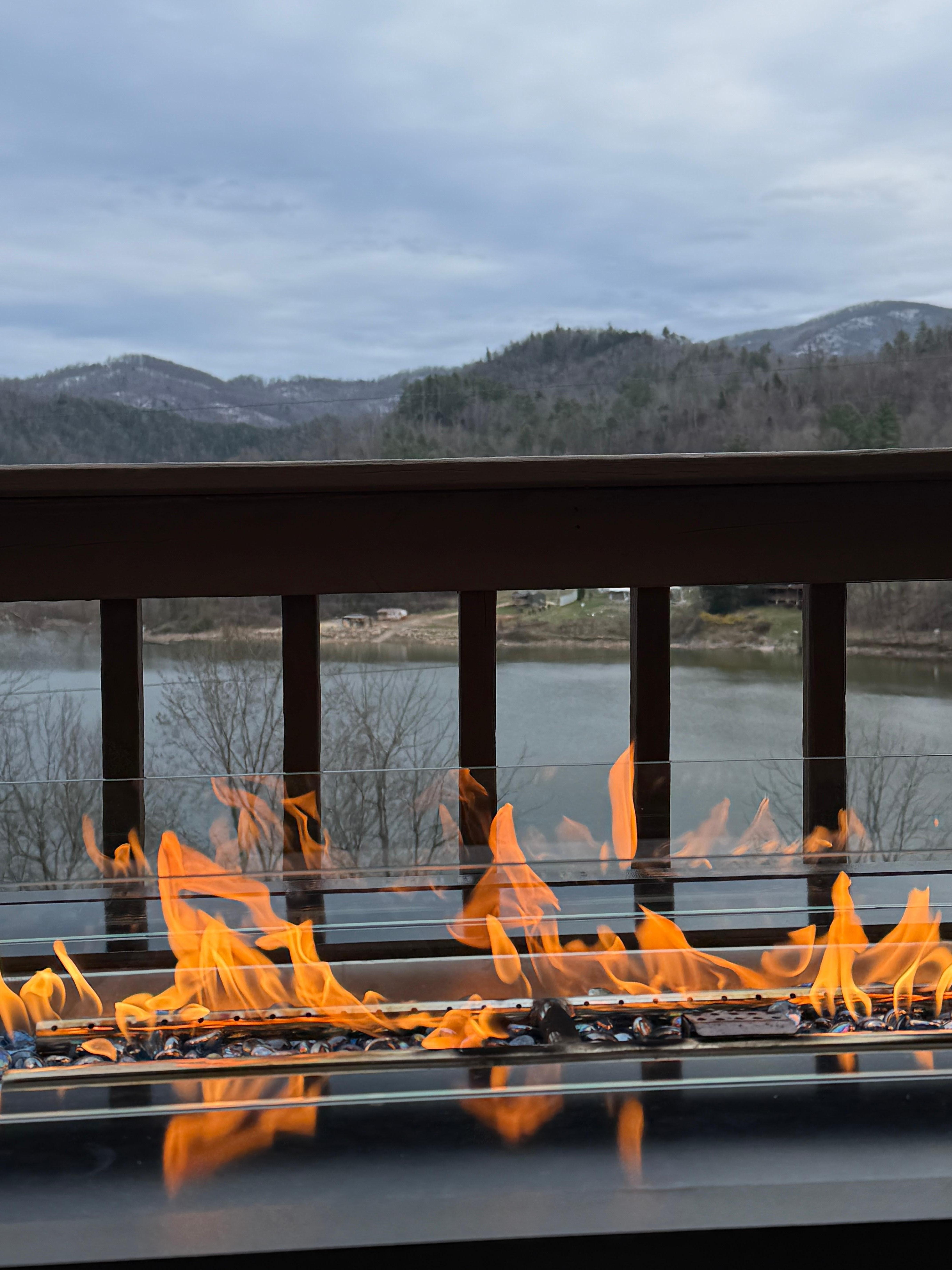 As you explore the wraparound deck, you’ll appreciate the extended living space, nature sounds, and beautiful views of the lake surrounded by mountains. The deck features a gas fire table, gas grill, outdoor seating, and tables for outdoor dining. For your ease and comfort, the gas fire table, gas grill, and gas fireplace are all hard lined in.
