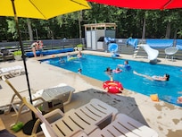 Amazing outdoor space including large deck, eating area, hot tub, fire-pit, large playground, HEATED salt water POOL 14âx36â ,6 ft deep with tanning ledge open from Memorial Day weekend till end of September , front patio with seating area.