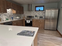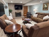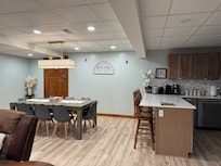 This gorgeous daylight basement rental has lots of beds and amenities for large groups and families! The fully decked out bunk room with arcade, toys, and games will entertain the kids for hours. Portable pack-and-play crib available for babies. Parents and adults will be able to relax in king size bedrooms or socialize in the fully furnished living space, with reclining furniture. The fully equipped kitchen will be a pleasure for preparing delicious meals! There are fold-out futons in one king room and in the bunk room for extra sleeping space.