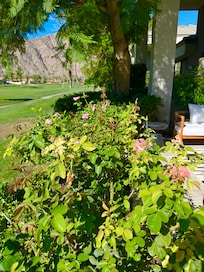 Welcome to Rancho Palmero. The epitome of a desert oasis. Our 3 bedroom/3 bathroom home has been completely renovated with all of the modern conveniences in mind. The back patio has south views of the Palmer Private Course 6th green and 7th tee box overlooking the lake as well as west views of the Santa Rosa Mountains down the 6th fairway. This end unit offers privacy, tranquility, and majestic views day and night. Two community pools and spas are just steps away from our home. The garage is temperature controlled and has an EV charger. Now the garage is stocked with a 6 person golf cart for cruising around PGA West or adventuring into Old Town La Quinta. And the kitchen has a brand new natural gas range.