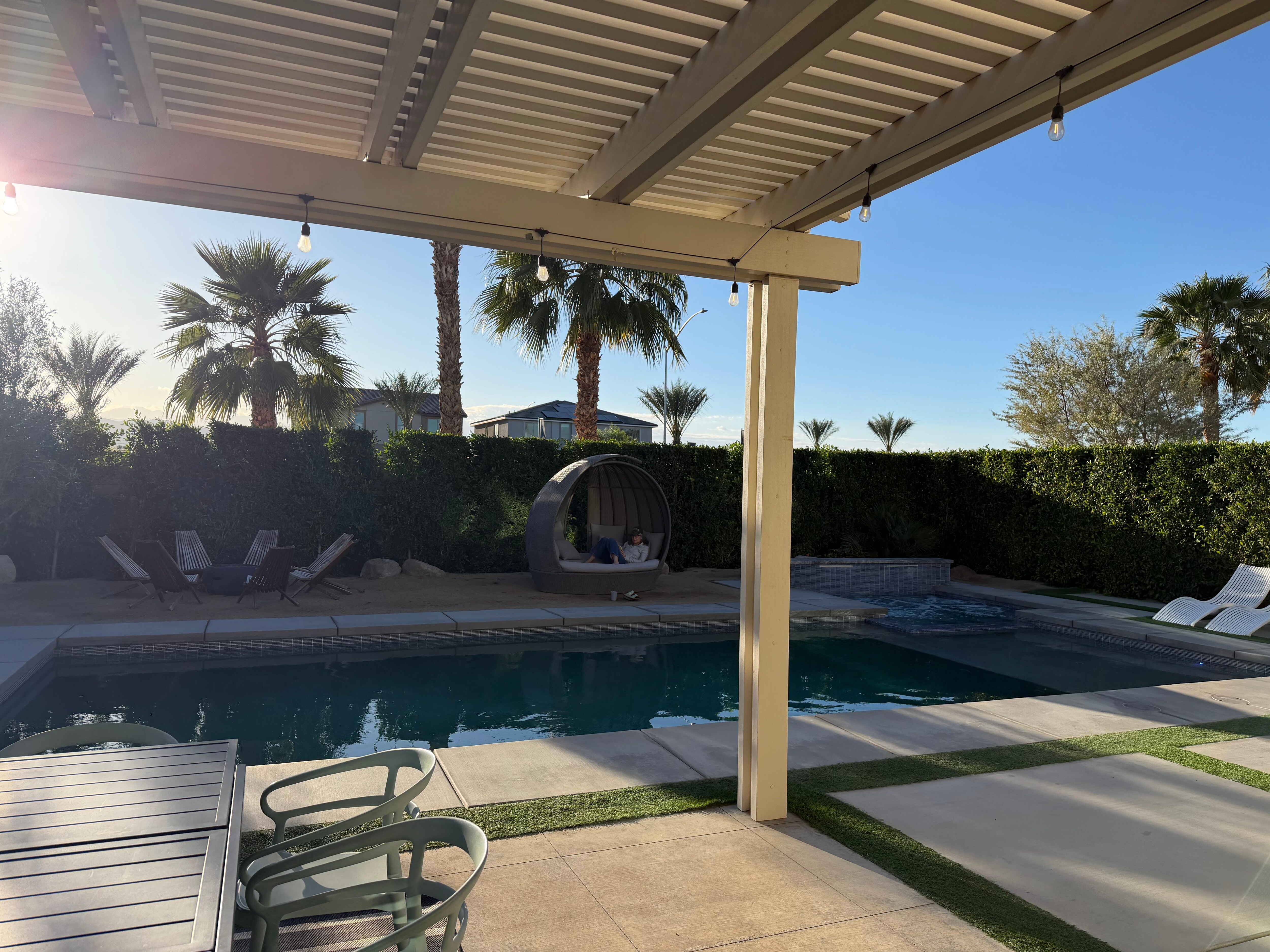 Outdoor 65” TV to watch sports/movies from the pool/spa.