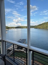 Home is very cozy with 3 levels spanning 2800 square feet. The upper porch is screened in with vaulted ceiling and offers a panoramic view of the lake.