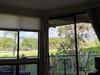 De la véranda, vous trouverez de belles vues sur Old Blue parcours de golf de Wailea, les pentes de Haleakala et les couleurs changeantes d'un coucher de soleil Maui réflexion sur la montagne. Surveillez les divers animaux sauvages, y compris les aigrettes, les cardinaux hawaïennes, autre variété d'oiseaux et parfois sauvage cerfs axis.