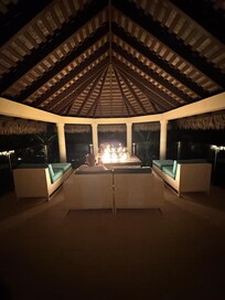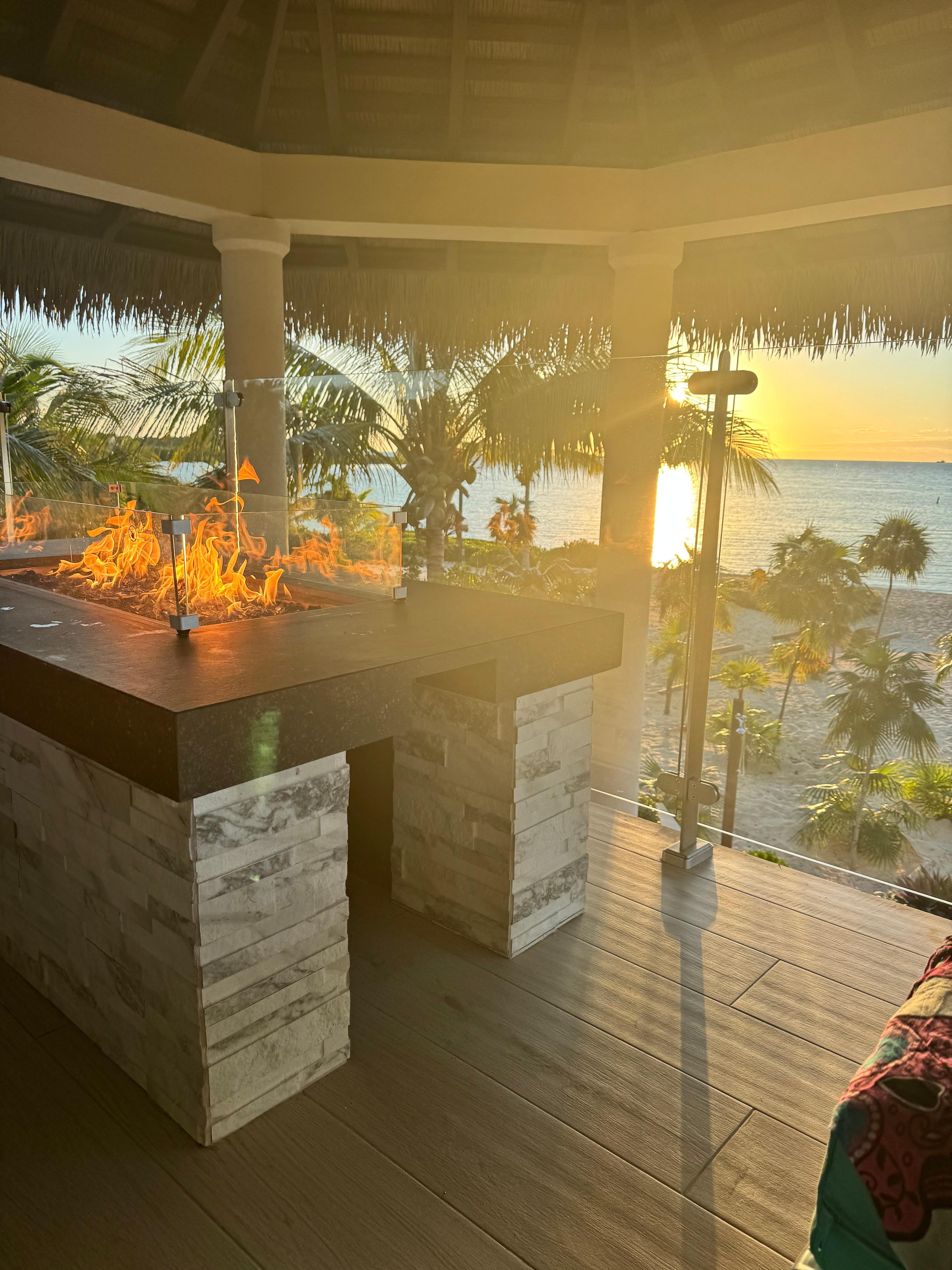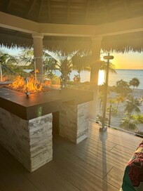 Each bungalow features a unique second-floor palapa, complete with comfortable lounging furniture, a cozy fireplace, and a refrigerator for your convenience. Imagine relaxing with your loved one in this enchanting space, sipping drinks looking at the stunning turquoise waters of Long Bay Beach. The palapa provides an unparalleled vantage point to soak in the mesmerizing views, making it the perfect spot for intimate moments together.