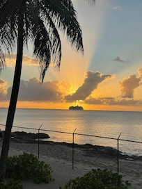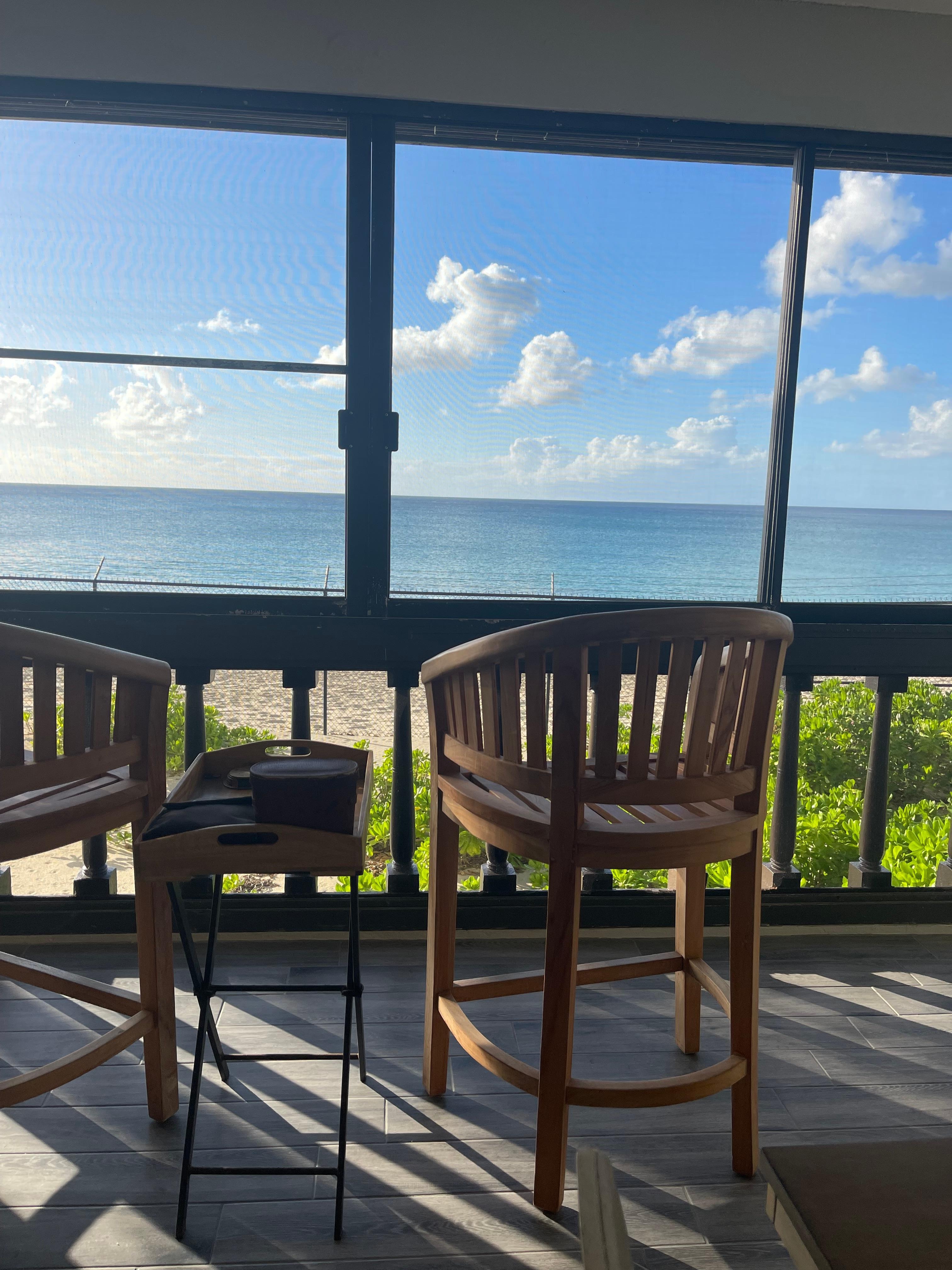 The open dining and lounge areas boast a wall-sized screened window that lets in the refreshing Caribbean breezes, while large windows throughout provide a steady cross-breeze. For added comfort, the bedroom is equipped with air conditioning, ensuring a cool night's sleep with the sound of the ocean just outside your window.