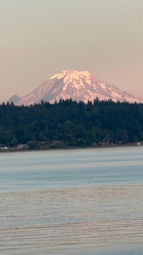 The house sits on a bluff with 180-degree unobstructed view of Dyes Inlet. Old town docks to the north, Chico creek to the south and Mt. Rainer to the southeast. Walk out to the deck and enjoy your coffee rain or shine under the awning and take it all in. Enjoy the beach with our seagull and other seabird visitors. Bright and inviting even on a gloomy PNW day. Mt Rainer glows at sunset. Sunrises are can be misty and magical with the mirror water and fog or spectacular pinks and purples. The moon rises right in front of this east facing home and its light is a rippling beam on the water. Relax rain or shine. It is a great gateway to the Olympics.