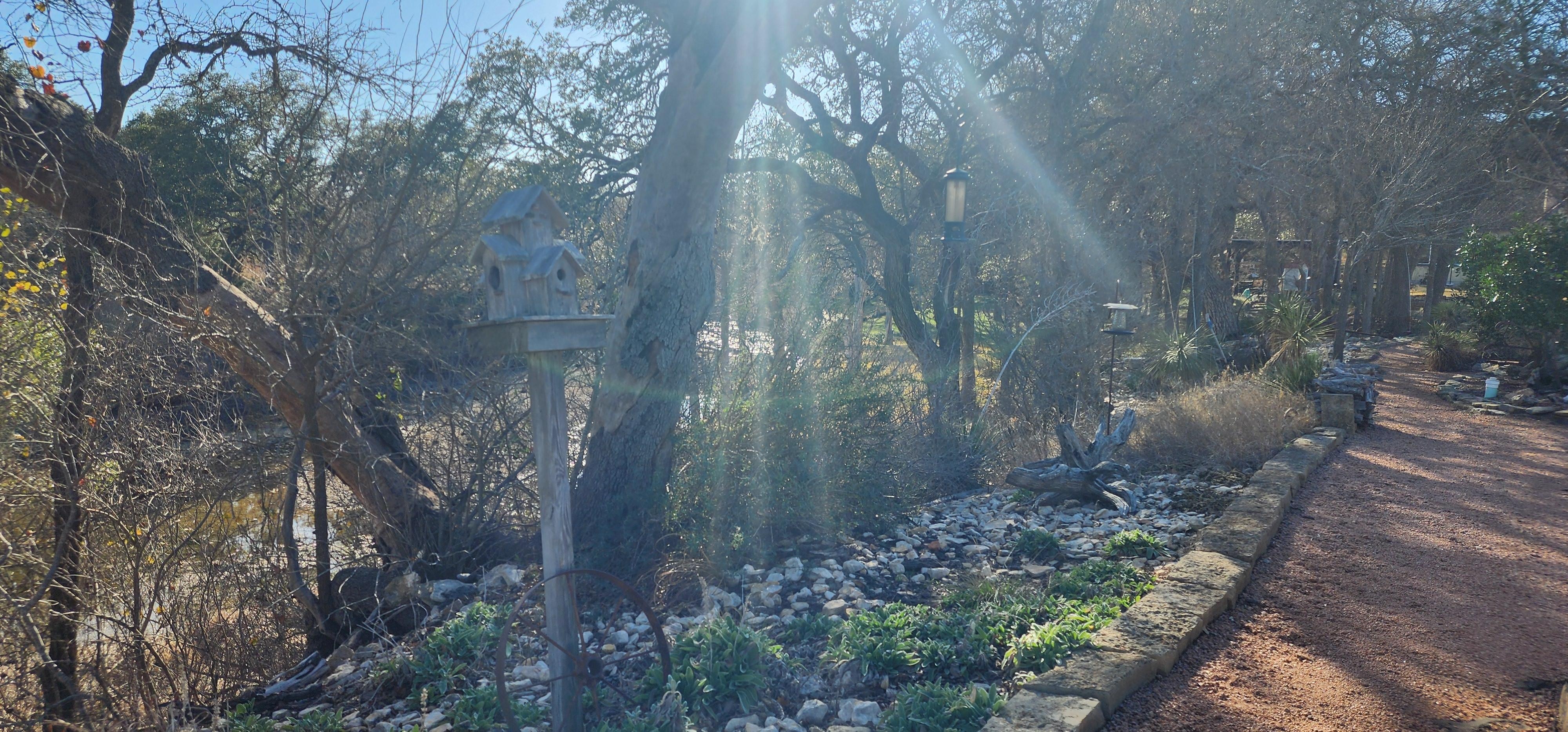 A l'extérieur, il y a beaucoup d'éclairage extérieur et l'immense pergola offre un endroit pour se détendre, dßner ou profiter d'une vue sur le Hill Country. En outre, il y a aussi un bois cheminée en pierre fosse avec beaucoup de siÚges confortables pour briser le froid de l'hiver pour profiter de la famille / amis. La cour est joliment aménagé avec Texas plantes indigÚnes pour attirer les papillons et les colibris. Assurez-vous d'explorer la propriété pour profiter de la faune et les oiseaux chanteurs abondantes. Vous pouvez également battre la chaleur en prenant une courte randonnée au «trou de natation" pour un plongeon dans les eaux claires de Bear Creek (dans des conditions non-sécheresse).