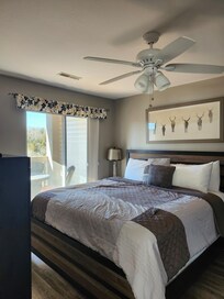 Vous allez adorer les deux suites de ce condo! Les lits sont Ă©quipĂ©s de draps Ă haute densitĂ© de fils, et nos clients nous disent tout le temps que ce sont les lits les plus confortables dans lesquels ils aient jamais dormi. Vous voulez garder un Ćil sur le gros gibier pendant que la famille regarde un film dans le salon? Nous avons inclus une tĂ©lĂ©vision Ă Ă©cran plat dans les deux chambres Ă cet effet! Les chambres ont Ă©galement leur propre salle de bain privĂ©e. Ce condo peut accueillir jusqu'Ă six personnes.