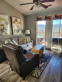 Il y a tellement d'espace pour s'étaler et se détendre dans ce condo! Le salon est trÚs ouvert, et nous avons inclus de nombreux films et jeux afin que vous ayez tout ce dont vous avez besoin pour créer de merveilleux souvenirs de famille qui dureront toute une vie. Le canapé-lit est équipé de draps de luxe et la cuisine est ouverte sur le salon, vous ne serez donc jamais loin d'une collation rapide. Nous aimons également passer du temps sur le pont. Attendez juste de voir les vues à 180 degrés des magnifiques Ozarks.