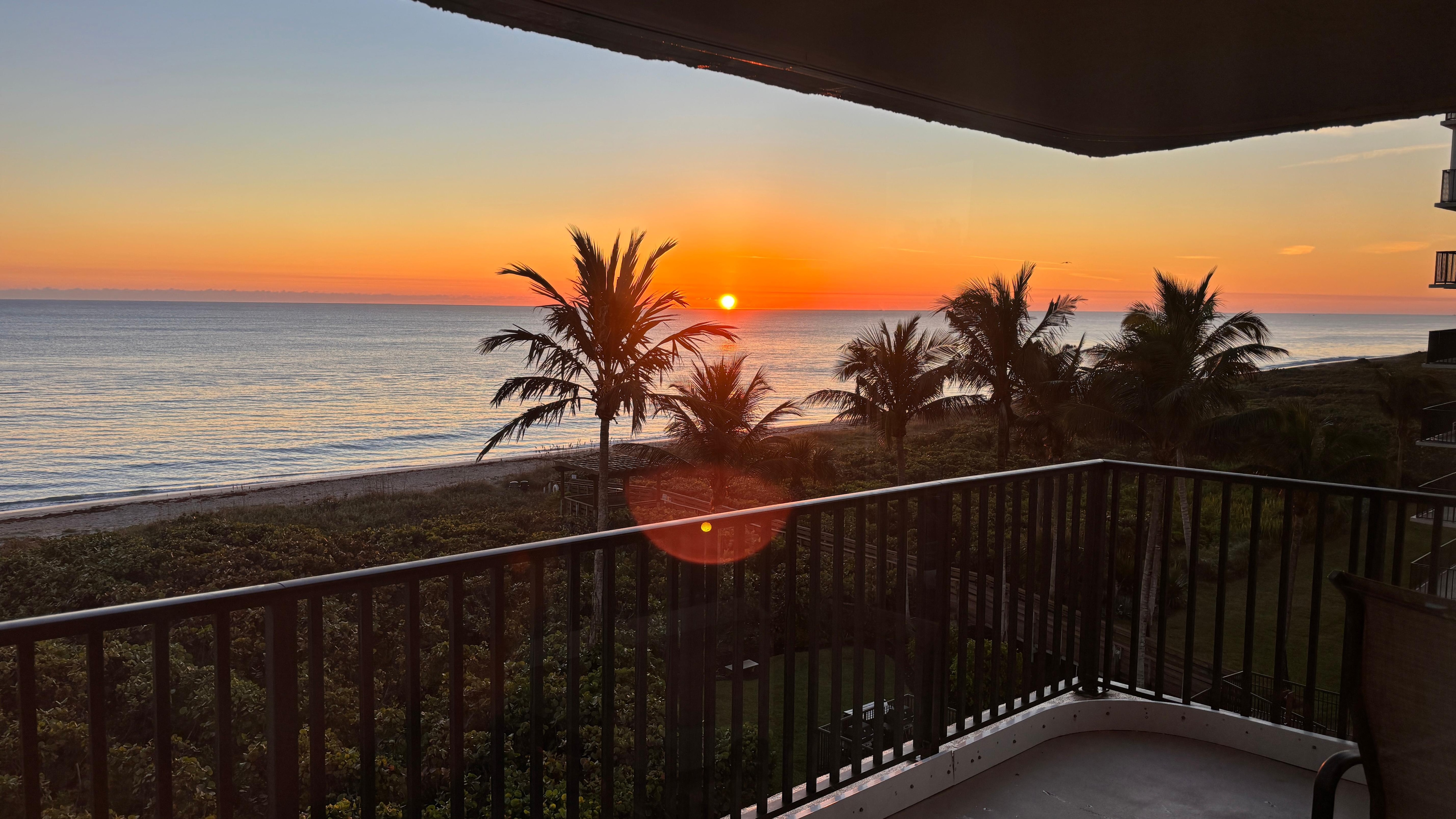 Grand balcon panoramique offrant une vue directe sur l'océan Atlantique et la plage. Le salon et la chambre principale offrent également une vue magnifique sur l'océan.