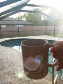 The large screened lanai and pool area is very airy, very sunny and very private with 3 large door walls from our home to the private lanai and private heated pool.