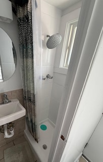 San Diego Surf Shack #6 (think small cottage with a beach vibe) just 100 ft from the Pacific and a 5 minute walk to the sand! It's a 200sq ft studio, very cozy. It features a luxurious bed, kitchen, HD TV, and blazing fast WiFi. The bathroom is airplane size, and includes a shower, but no tub. 100 steps to reach the top of the stairs that lead down to the beach!