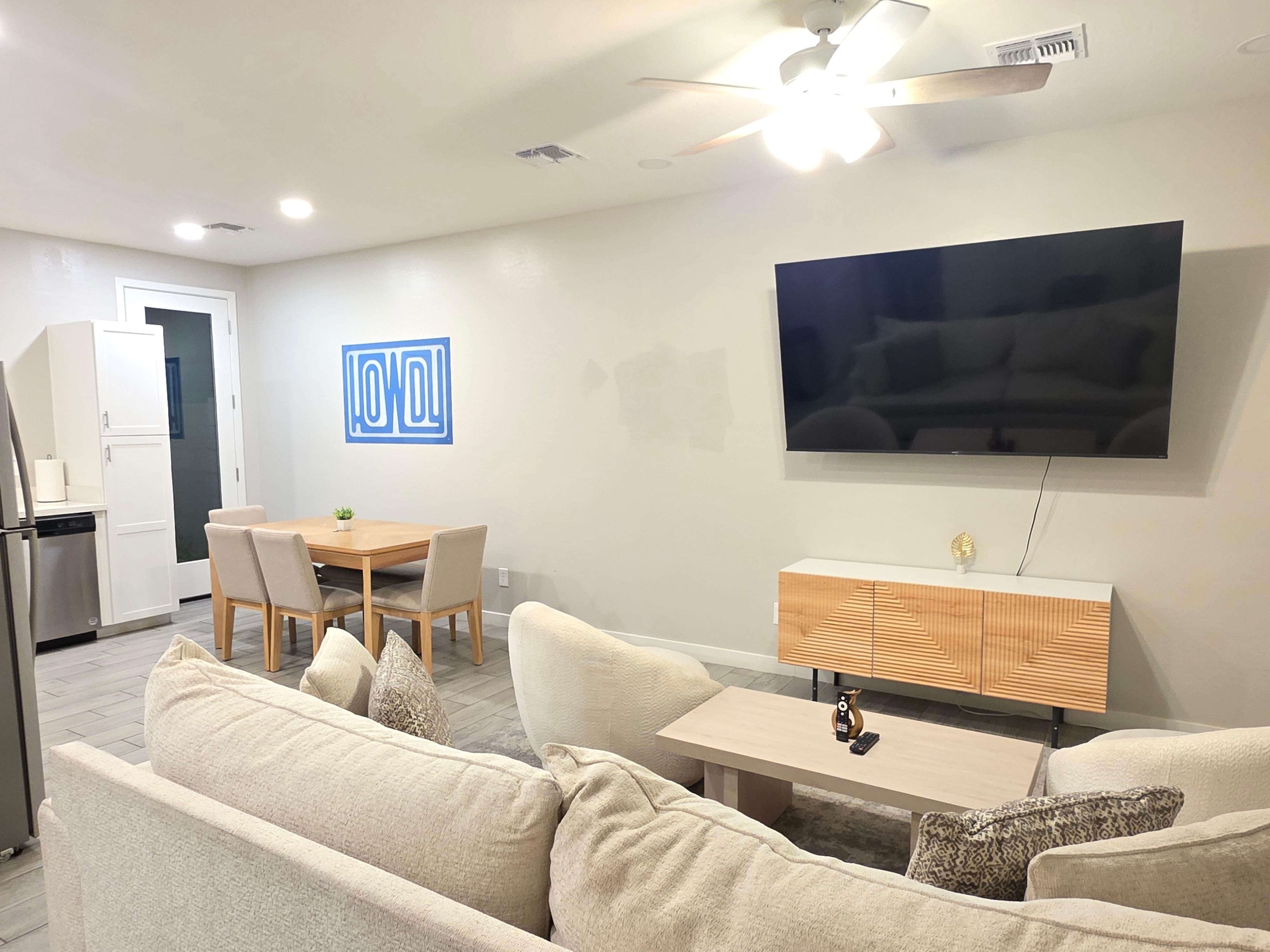 You’ll have full private access to the entire 2-bedroom, 2-bathroom apartment during your stay—no shared spaces. Everything you see in the photos is yours to enjoy, including: ✔ Spacious living & dining area with 70” Smart TV ✔ Fully equipped modern kitchen with cookware, dinnerware, and coffee essentials ✔ Two luxurious bedrooms with blackout curtains and Beautyrest Hybrid mattresses ✔ In-unit washer & dryer for your convenience ✔ Free on-site parking ✔ Self-check-in/check-out via secure smart lock ✔ Portable crib, air mattress (BYO bedding), and ample storage space You’ll also have quick access to: 🚗 Major highways and roads 🚌 Public transportation (Valley Metro bus + light rail) 🚶♂️ Convenience stores, dining options, and parks We’ve made everything as easy and accessible as possible so you can relax and focus on enjoying your stay. 😊