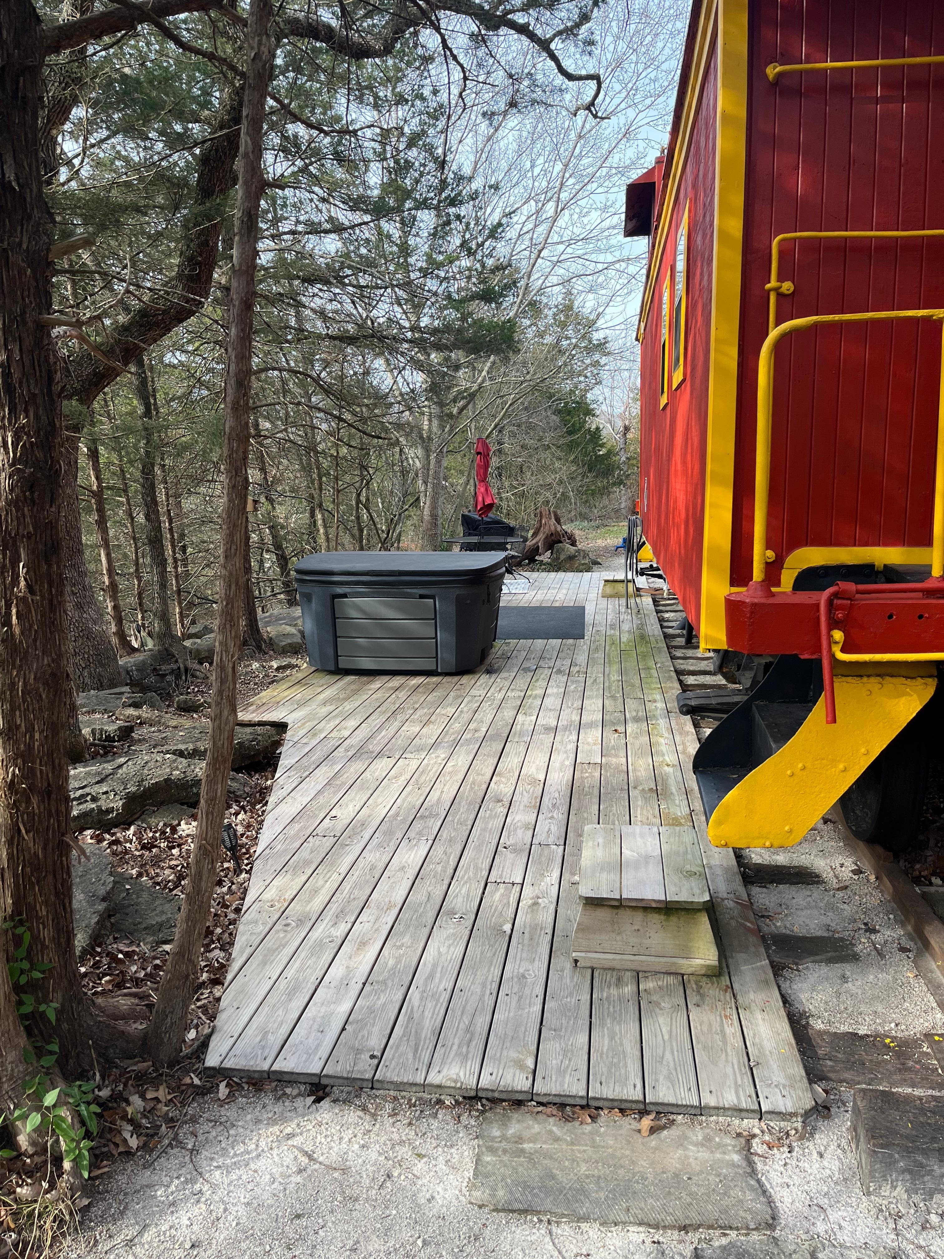 We had a very enjoyable stay at the Fabulous Caboose Cabin! Even though it was overcast the entire time, the peaceful wooded setting made for a relaxing and cozy getaway for two. The hot tub was a perfect touch!The cabin is full of charm and character. It does have a refrigerator, which was convenient for drinks and snacks. The space is a bit over-decorated, and the bed wasnât the most comfortable, but overall, we had a fun and memorable stay. A unique experience in Eureka Springs!